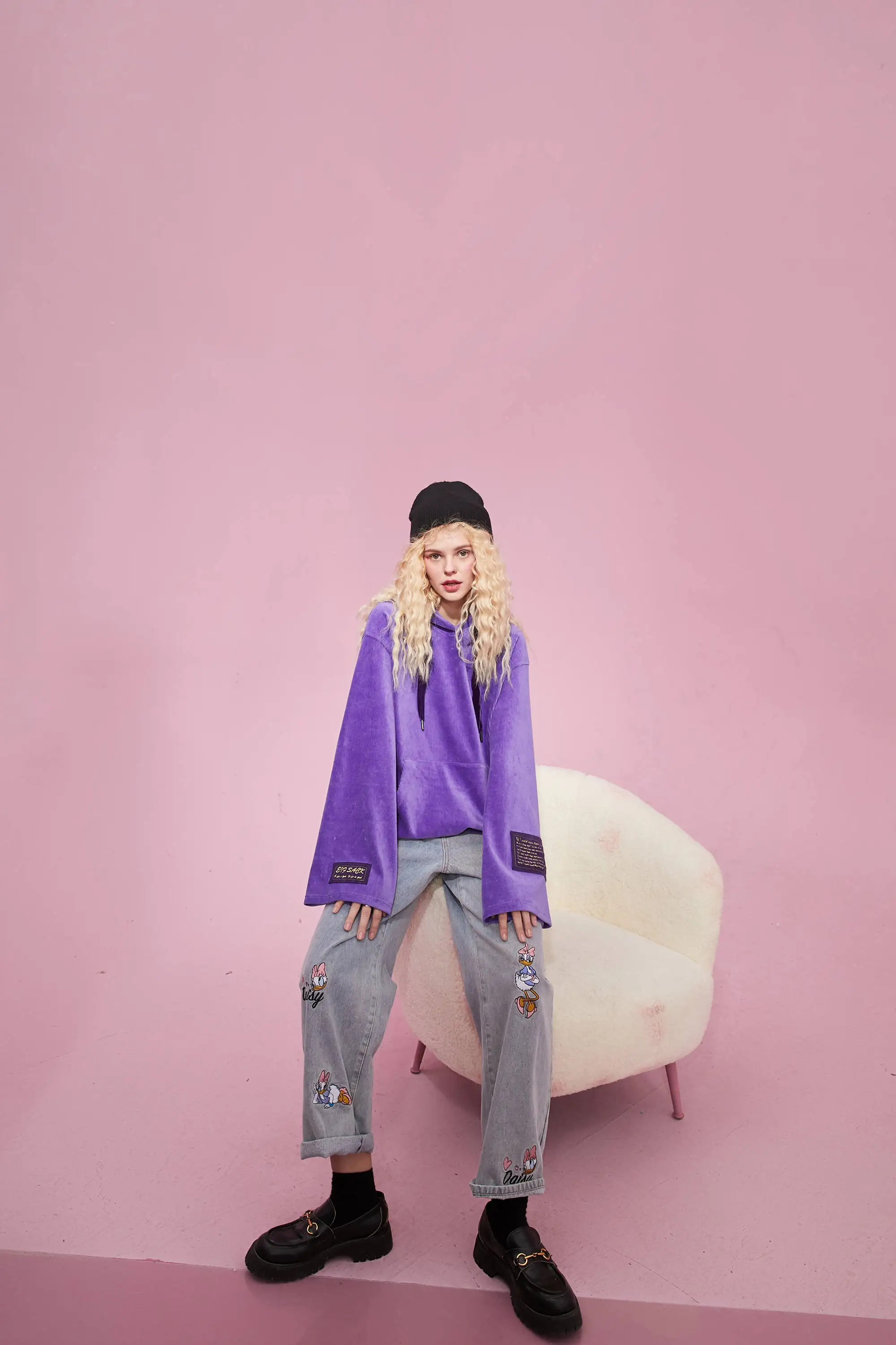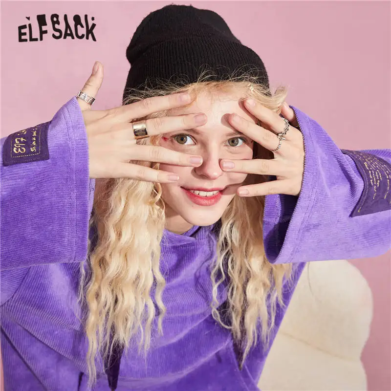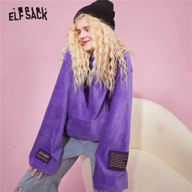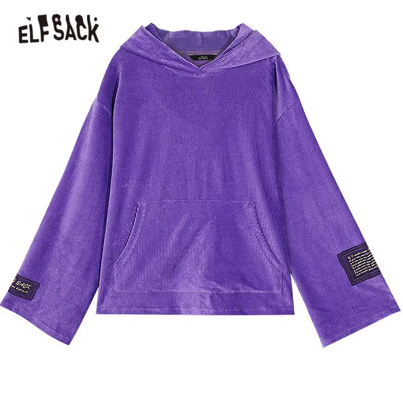 Женский Повседневный пуловер ELFSACK Harajuku, Фиолетовый Пуловер оверсайз с аппликацией, осень 2020, чистый корейский женский базовый Повседневный Топ