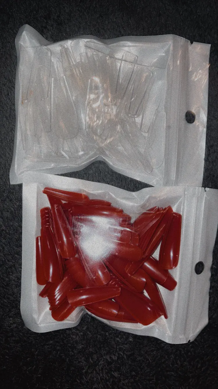 These nails are amazing. Their shape, length and structure are beautiful. Ive ordered the white ones before, they were also perfectly as described. My only issue with regards to these nails is that they took a while to get here and that once you remove them after wear they leave small patches of black on my natural nails. These two issue are minor however when compared to how wonderful these nails are and how pretty they look.