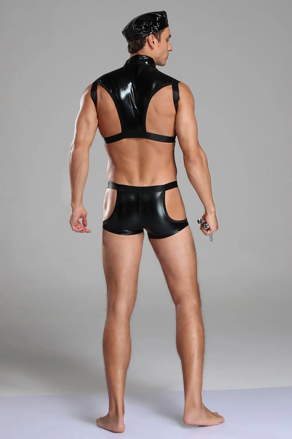 Черный сексуальный мужской Полицейский костюм, Ажурные топы и шорты, полицейский костюм, униформа для Хэллоуина, костюм для косплея, сценическая одежда для мужчин