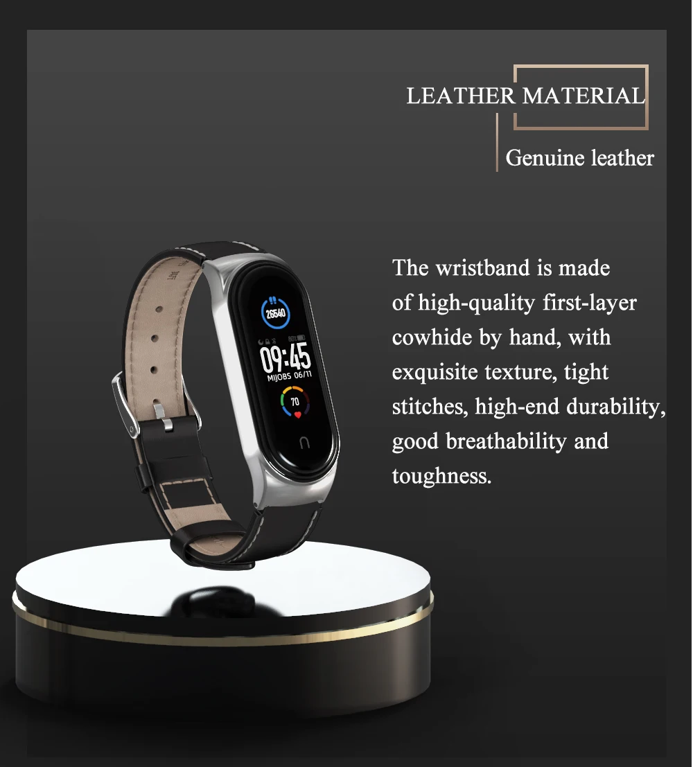 Ремешок из натуральной кожи для Mi Band 5, браслет для Xiaomi Miban...