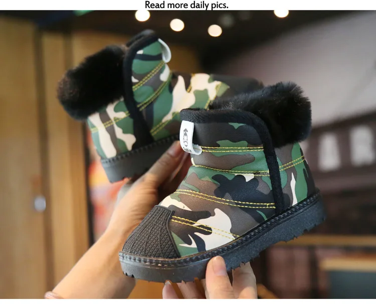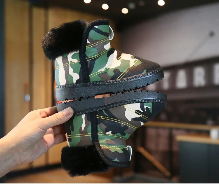 Детские зимние ботинки, утепленные меховые водонепроницаемые теплые хлопковые ботинки для мальчиков и девочек, модные камуфляжные зимние ботинки, размеры от 22 до 38