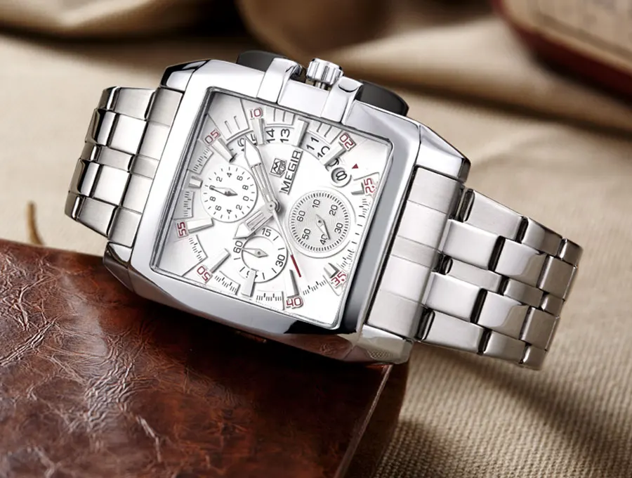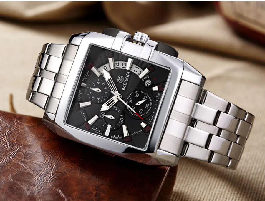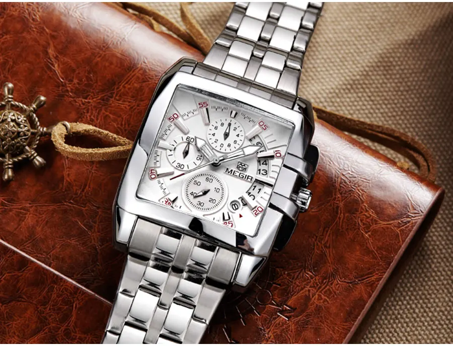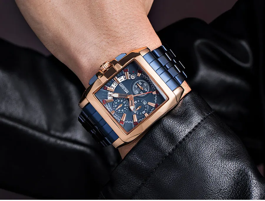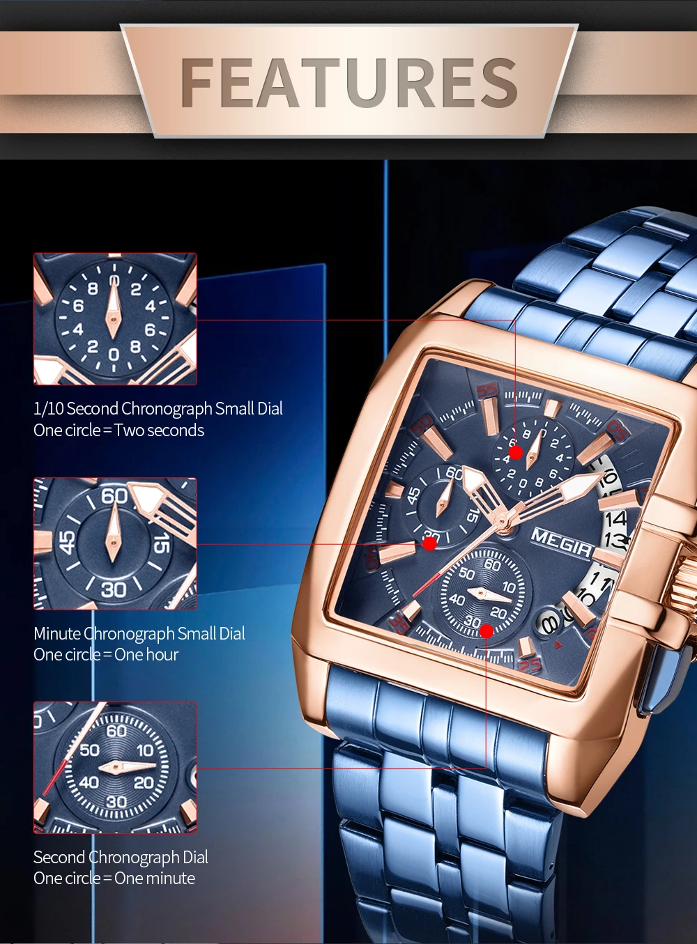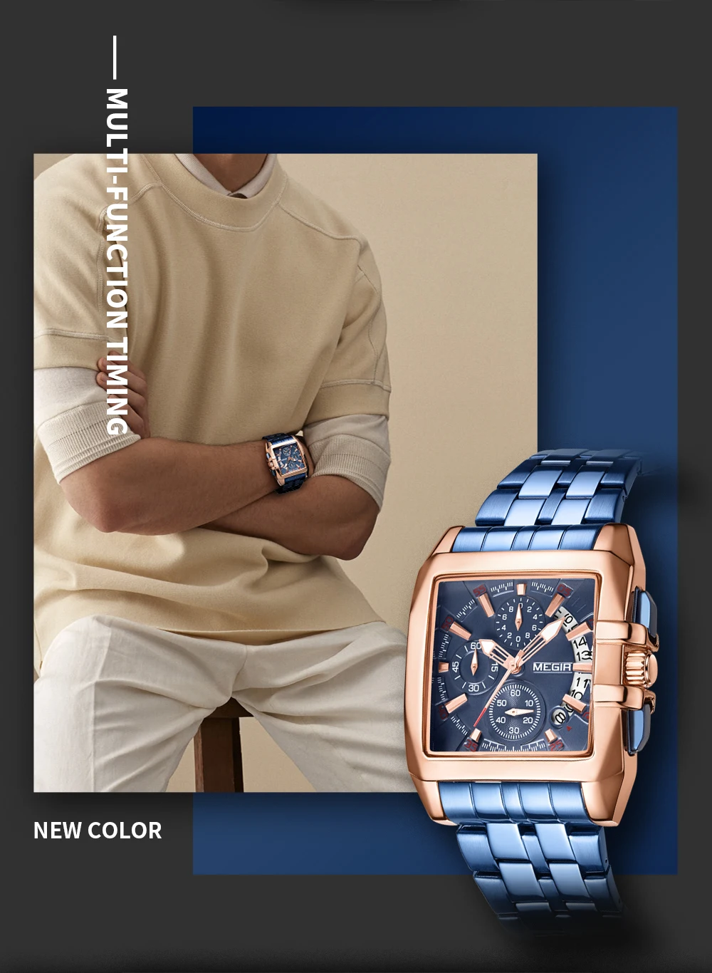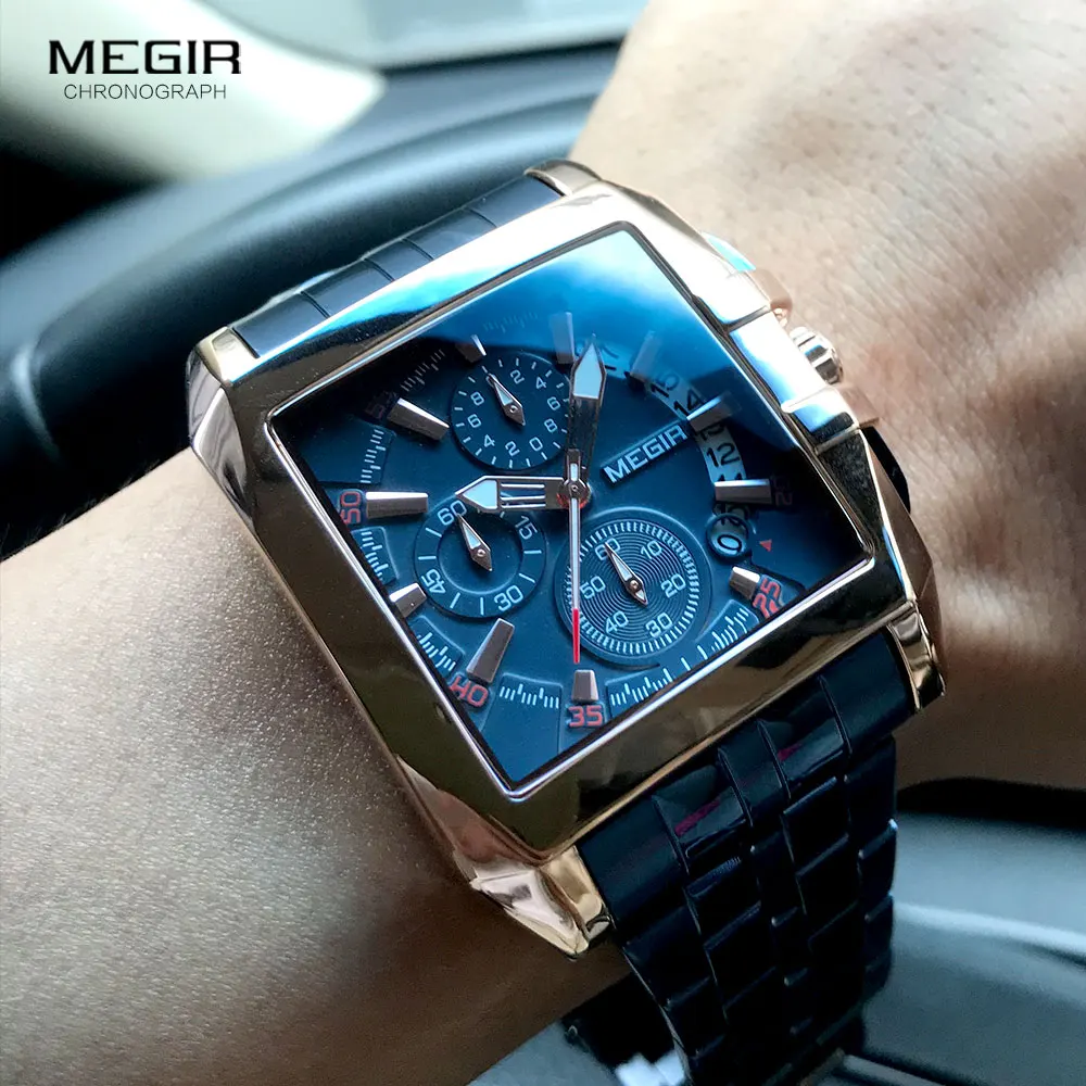 Часы мужские MEGIR из нержавеющей стали, синие, розовое золото, водонепроницаемые, светящиеся, военные, спортивные