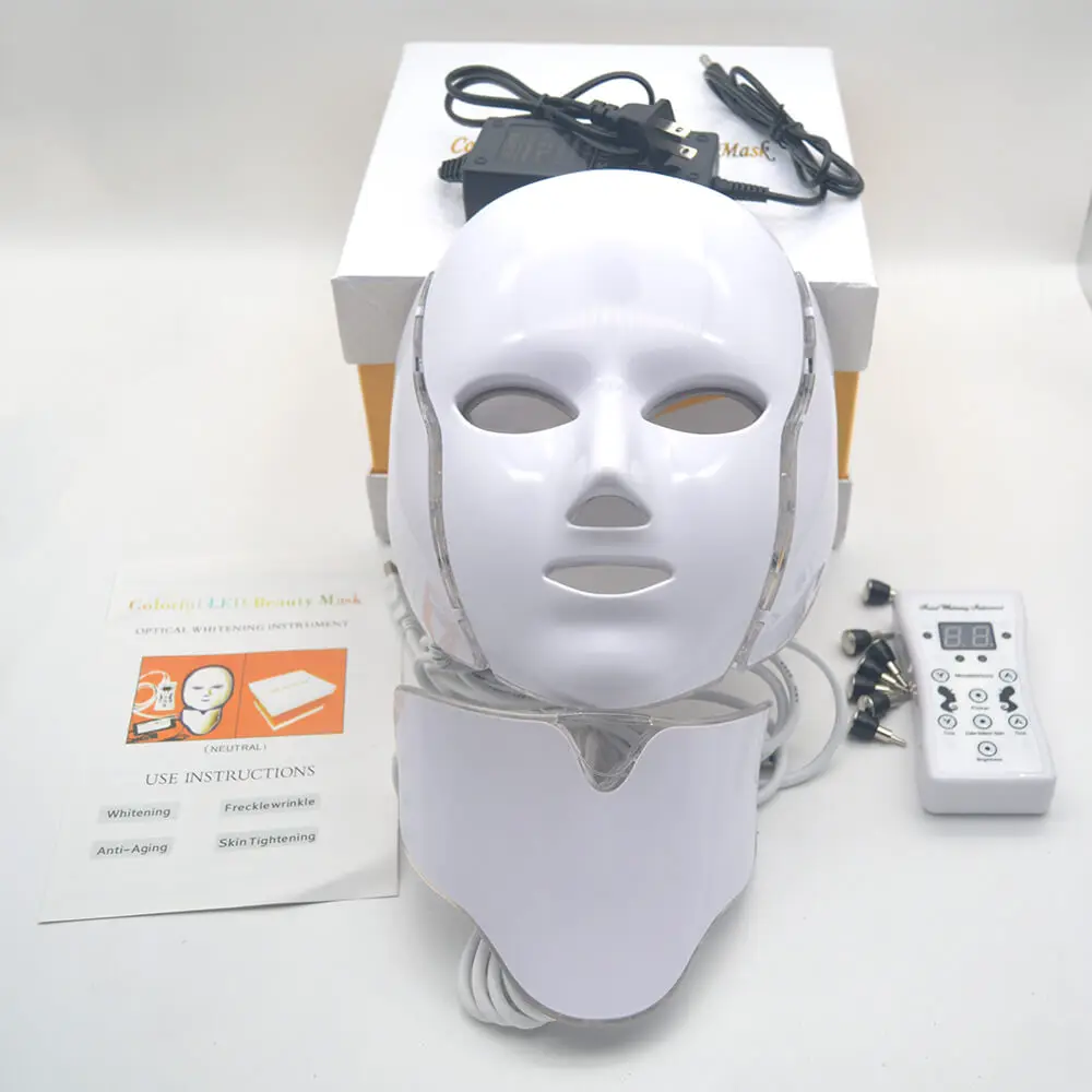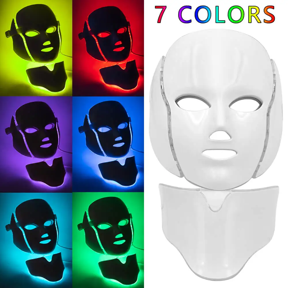 7 цветов светодиодный светильник маска для лица шеи кожи микротоковый уход фотон спа Лечение Красота затягивающее устройство против морщин, Акне терапия