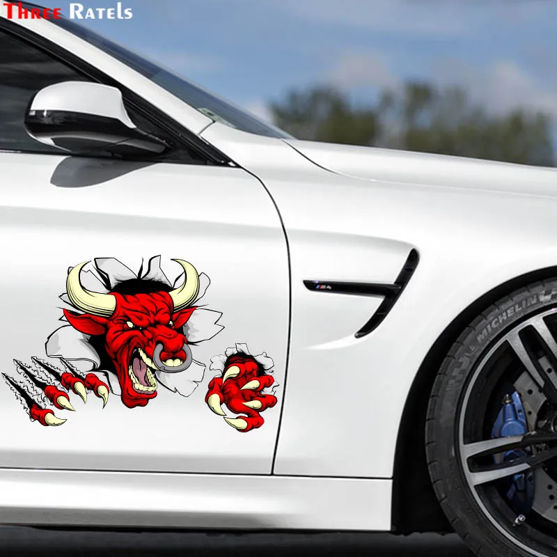 Автомобильные водонепроницаемые виниловые наклейки Three Ratels FC898 3D cow red of bull