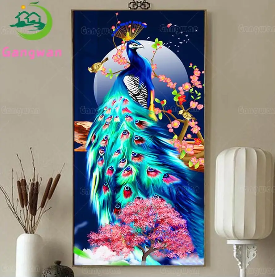 Большой размер алмазов картина комплект принтом павлина мозаика 5D вышивка искусство полная выкладка круглые стразы картинка комплект прохода украшения