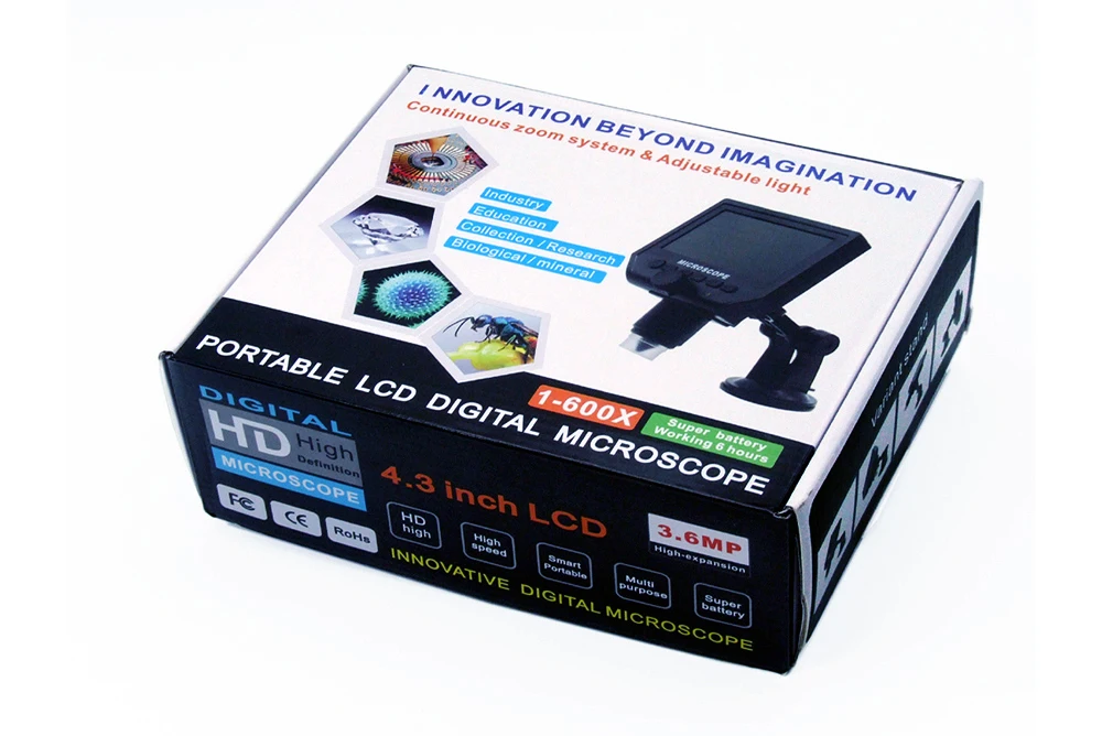 1: пиксель: HD 3 .6 МП CCD2: Дисплей: 4,3 дюймов HD OLED Дисплей.4: Увеличение: 1-600x система непрерывного увеличения.5: расстояние объекта: 15 мм -- Бесконечность6: со встроенной литиевой батареей, непрерывная работа в течение 6 часов.7: Языки: английский, испанский, русский, корейский, японский, тайский, иврит, португальский, немецкий, французский, итальянский, турецкий, чешский, польский, традиционный китайский, упрощенный китайский.