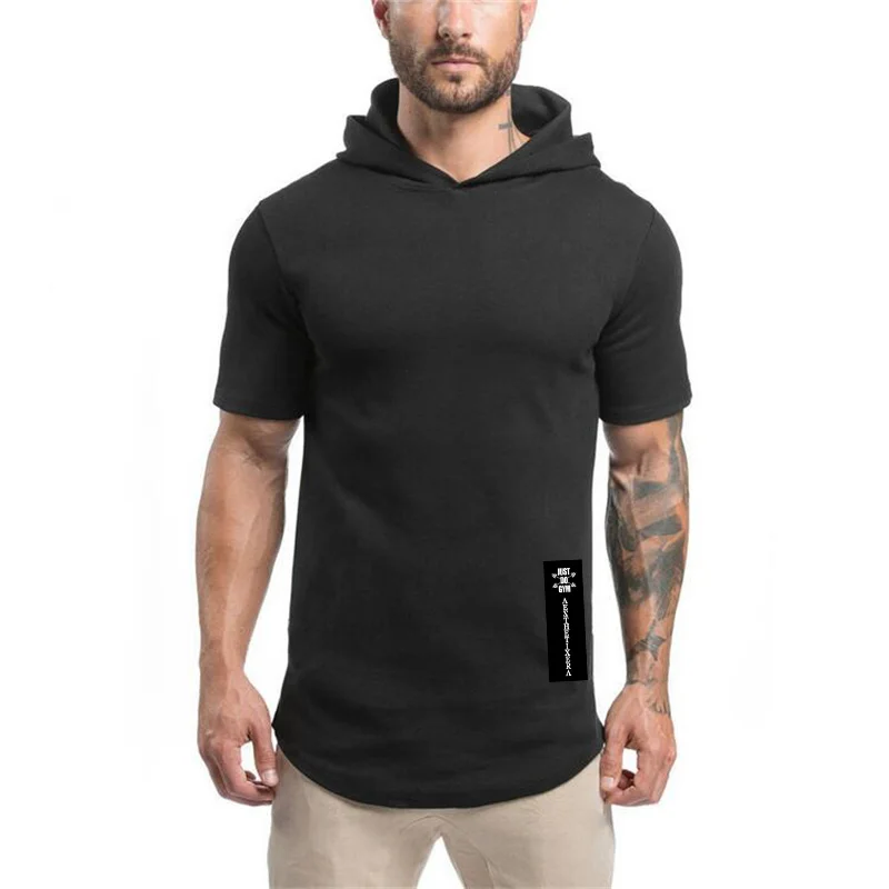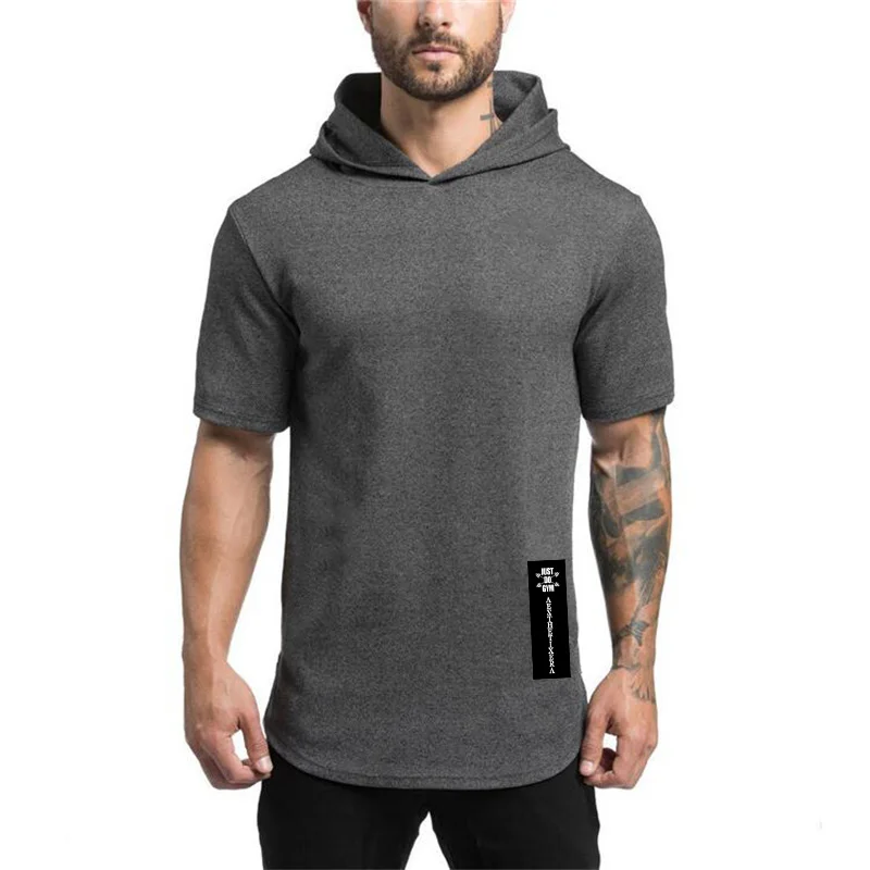 Новая летняя футболка с капюшоном для фитнеса, Мужская Уличная футб...