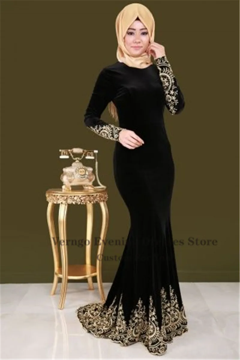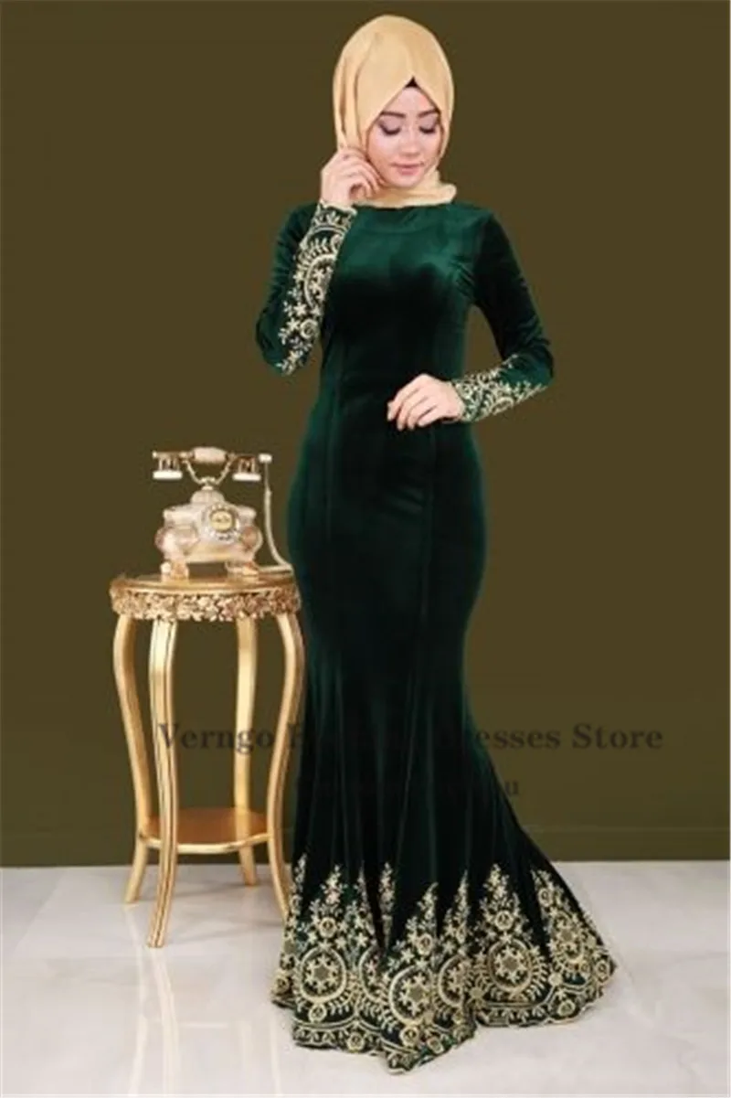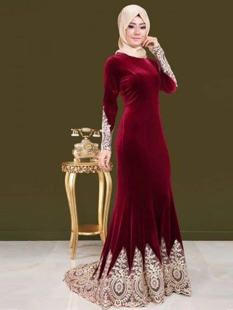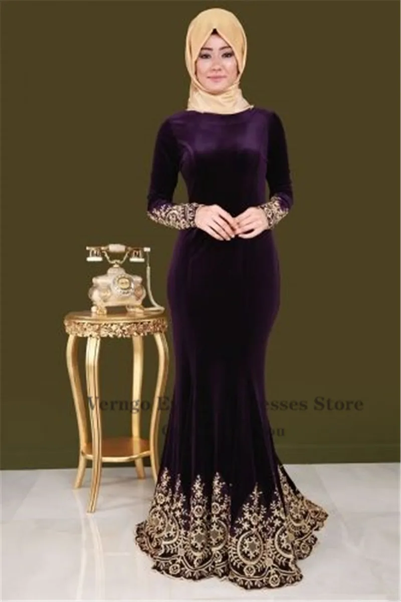 Вечернее платье-Русалка Verngo цвета Бургунди, Саудовский, арабский, с высоким воротом и длинными рукавами, велюровое, золотое, кружевное, официальное платье с аппликацией, женское