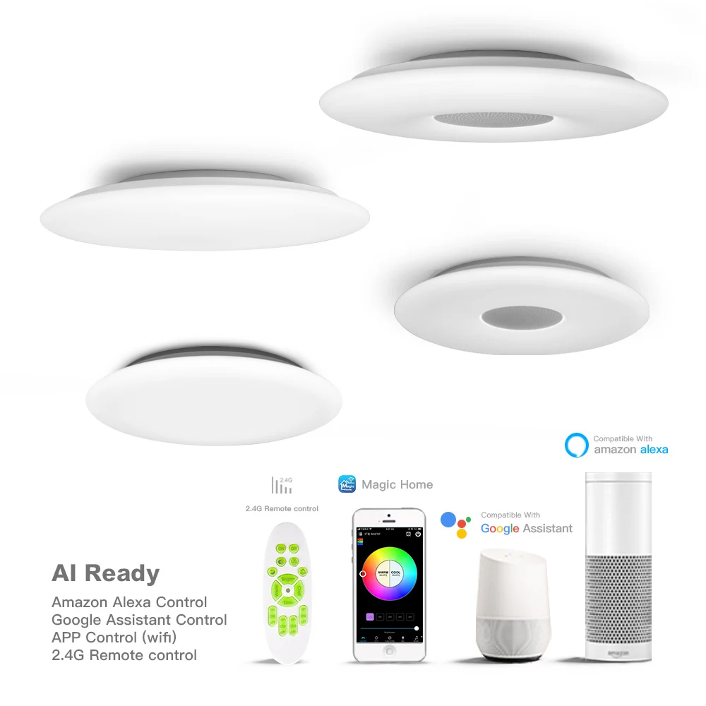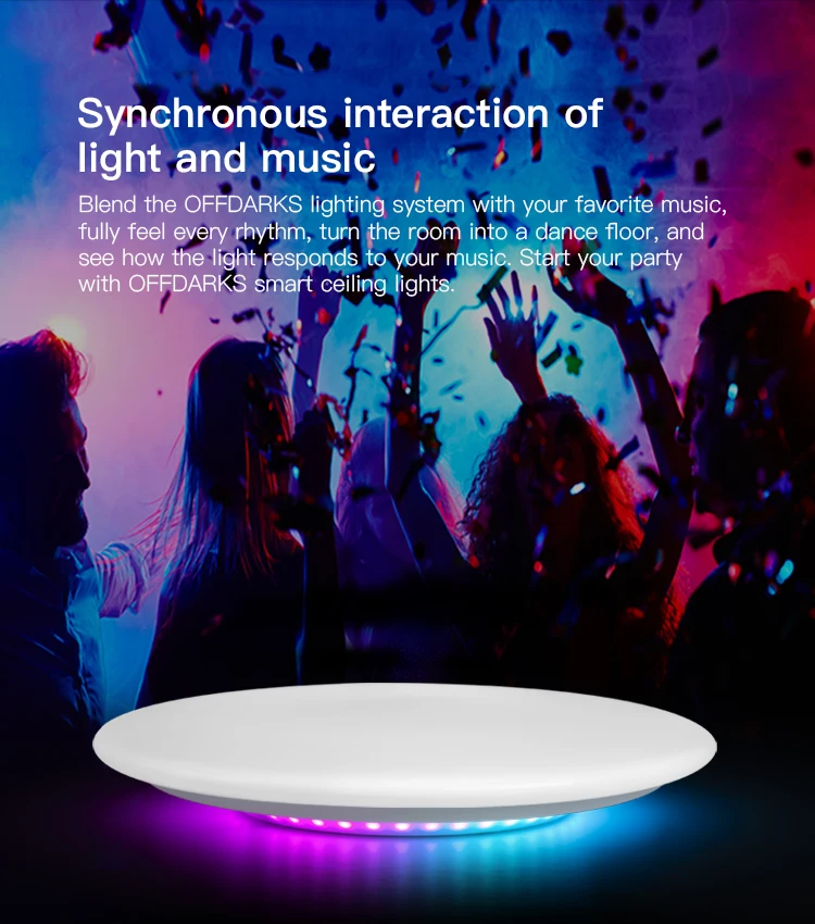 ●WIFI Смарт потолочный светильник● Переключатель синхронизации, переключатель задержки● Управление мобильным приложением, поддерживая Amazon Alexa, голосовое управление Google home● Выбор цвета DIY, Функция микрофона, функция музыкального режима● Цветовая температура регулируется от 3000 К до 6000 К● Регулируемая яркость и световой поток до 2700лм● Тип программного обеспечения приложения: Magic Home