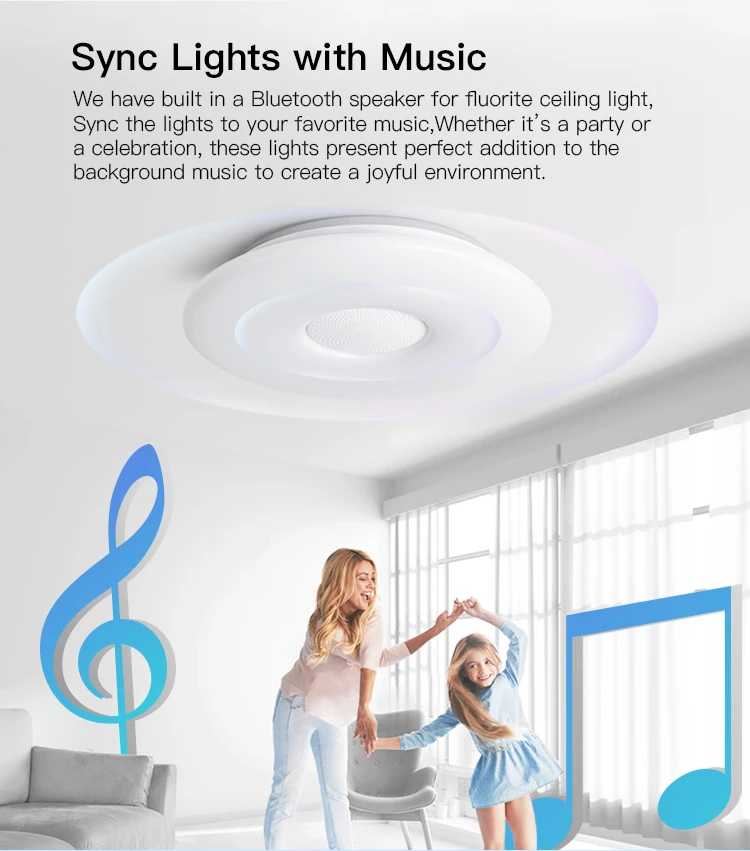 ● Музыкальная версия имеет функцию Bluetooth против подключения. Если вы не хотите использовать динамик или ваш сосед подключен к Bluetooth, вы можете выключить bluetooth-динамик в пульте дистанционного управления.● Пульт дистанционного управления не имеет батареи, когда он покинет завод.● Поддержка Alexa и Google Home.Рекомендуемое пространство Подходит для: спальни/кухни/гостинойРекомендуемая Площадь помещения:36 Вт потолочный светильник, подходит для 10-15 квадратных метров. Просторные комнаты, такие как гостиная, спальня, кабинет.55 Вт потолочный светильник, подходит для 15-30 квадратных метров. Большая комната, например, гостиная, большая спальня.68 Вт потолочный светильник, подходит для 20-35 квадратных метров, гостиной, спальни