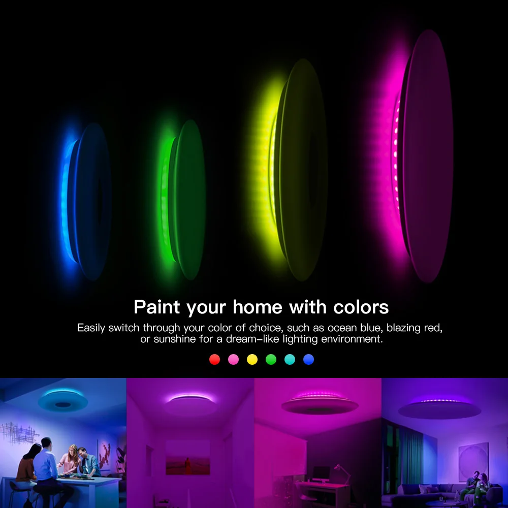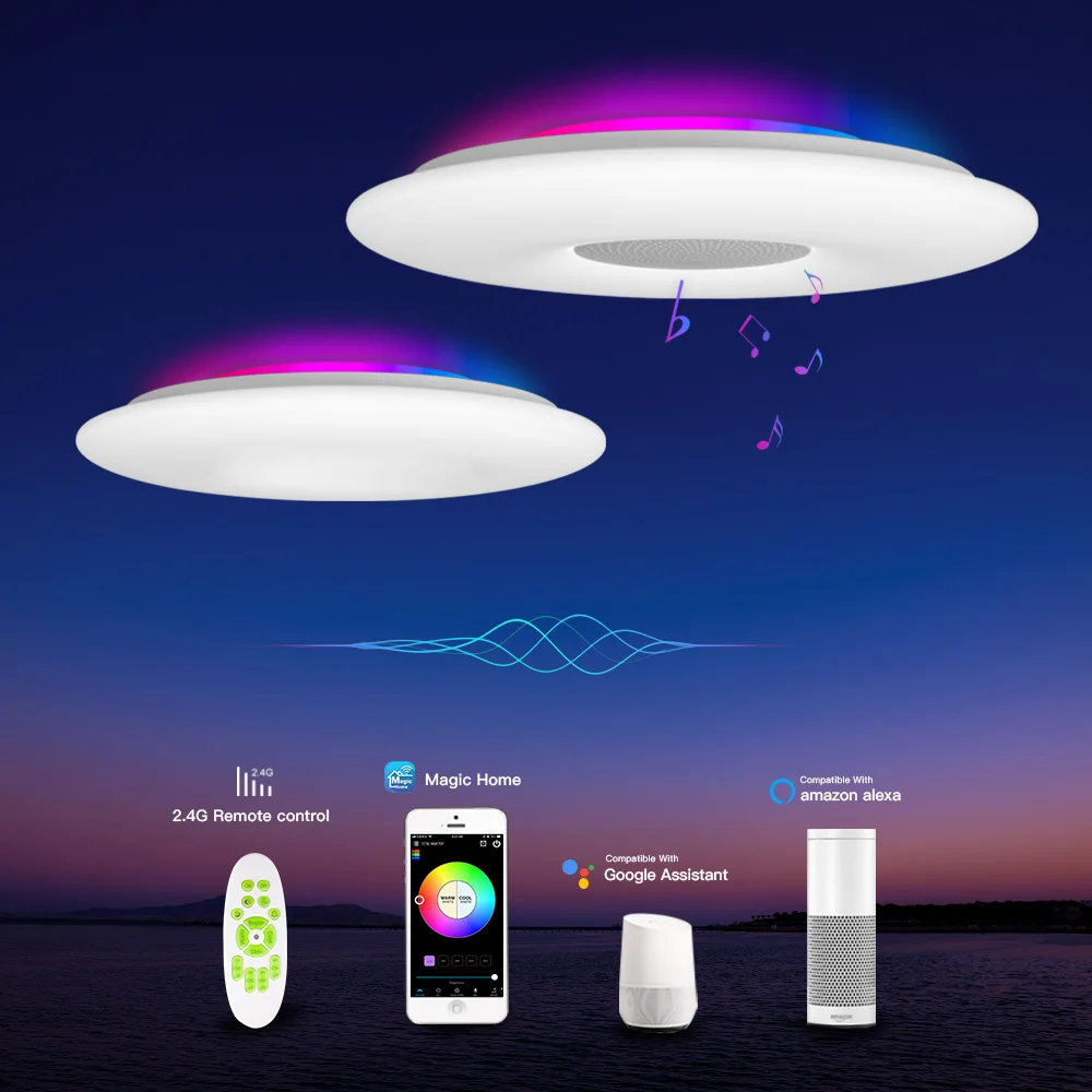 Умные потолочные светильники, Wi-Fi, голосовое управление, управление через приложение, RGB затемнение, Bluetooth динамик, музыкальный потолочный светильник, спальня, кухня, гостиная