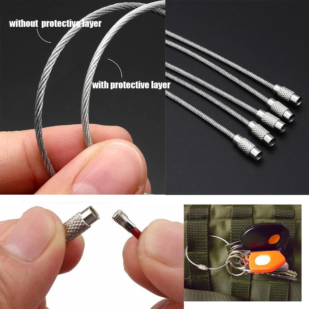 5 шт., держатель для ключей из нержавеющей стали с карабином, EDC, брелок для ключей, провода, кабель, веревка, винт, блокировка, брелок, инструменты для улицы