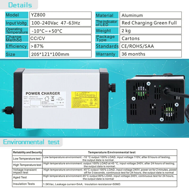 ● Параметры выхода: 84 в 10A 9A 8A 7A 6A ● Тип рабочего аккумулятора: 20S 72V литиевая батарея ● Стабильный MTBF: >30000H ● Эффективность: >87% ● Малый размер: 205*121*100 мм ● Светильник Вес: 1,8 кг ● Материал: металлический алюминиевый чехол ● Послепродажное обслуживание: гарантия 12 месяцев