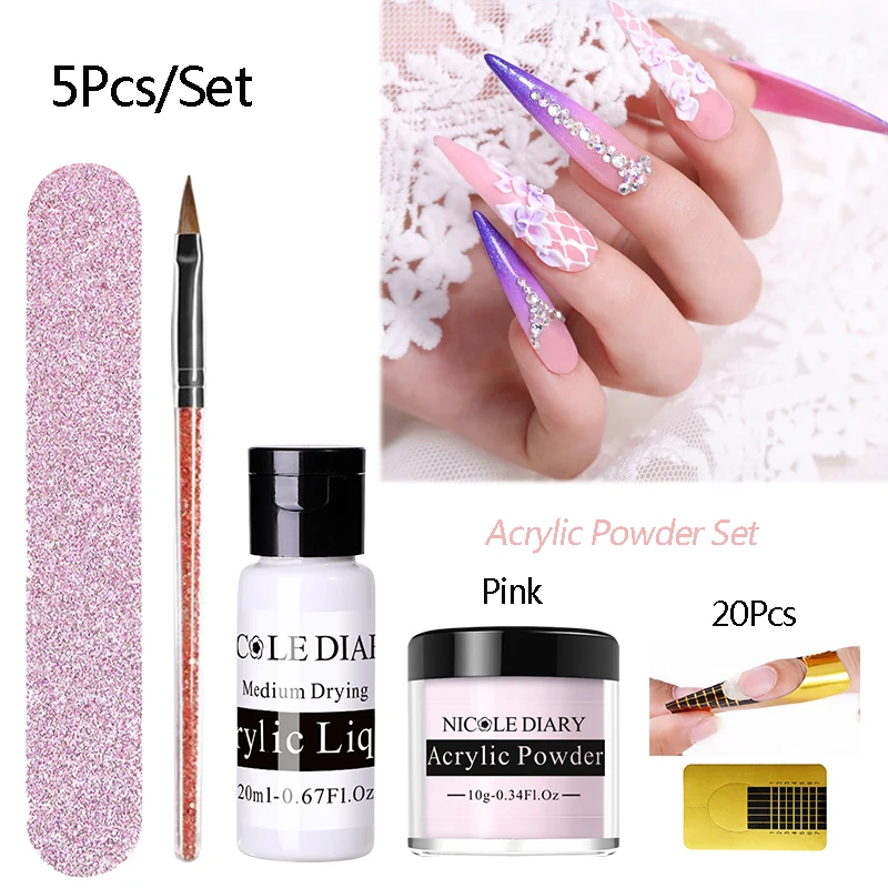 Николь дневник 5 шт.компл. погружная пудра с акриловой жидкостью для наращивания ногтей резной цветок акриловая пудра сделай сам украшение для дизайна ногтей