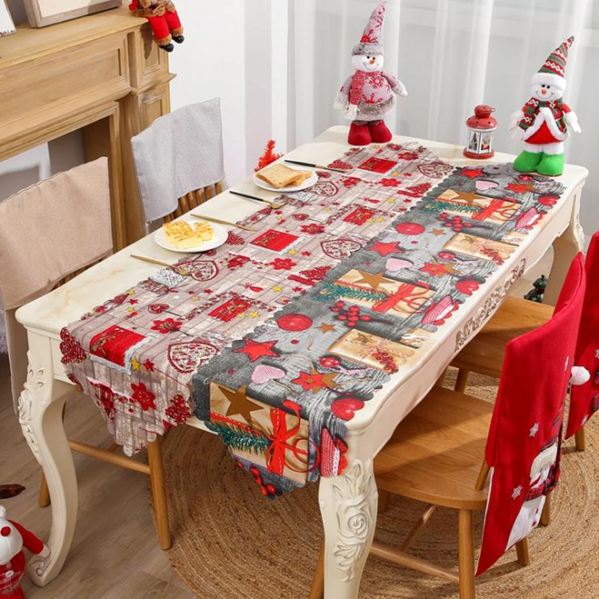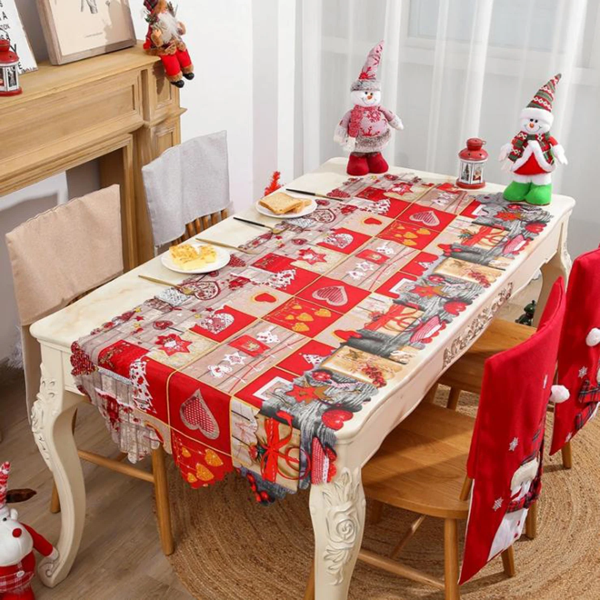 Скатерть в стиле ретро, Рождественская скатерть для стола, украшени...