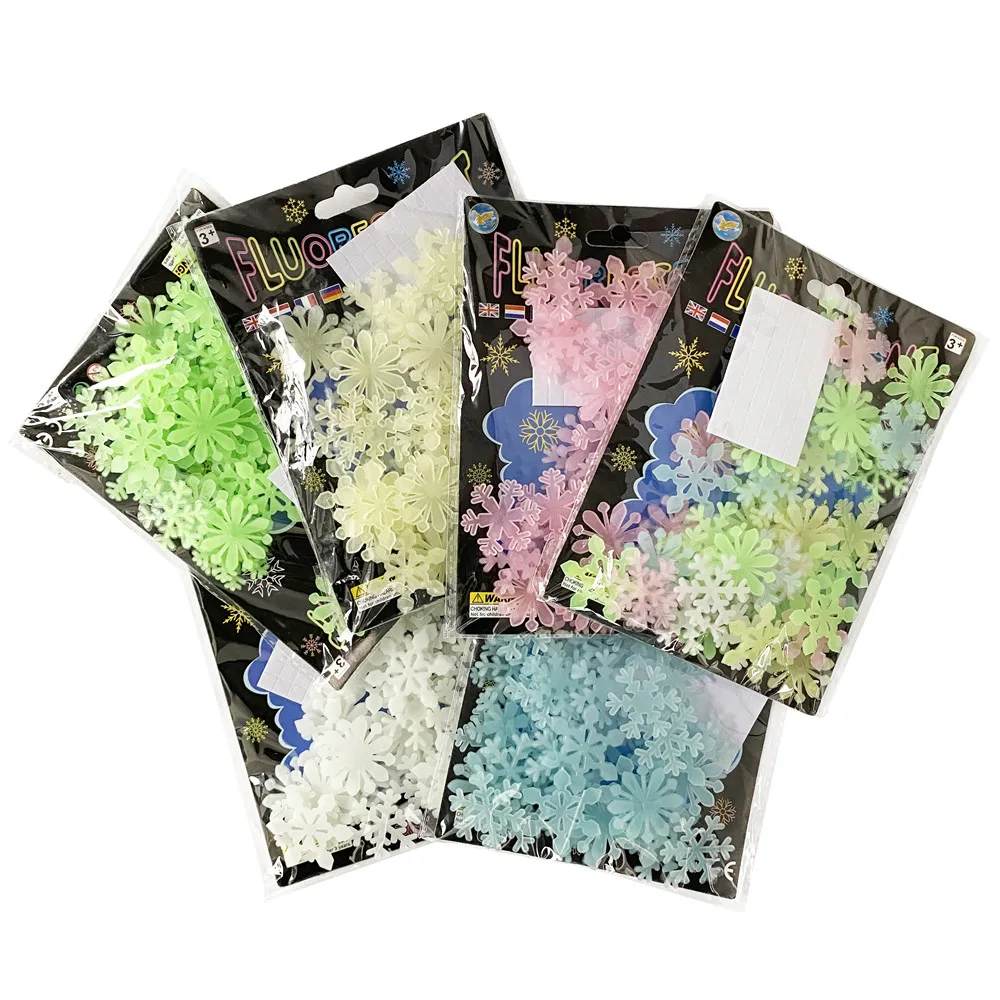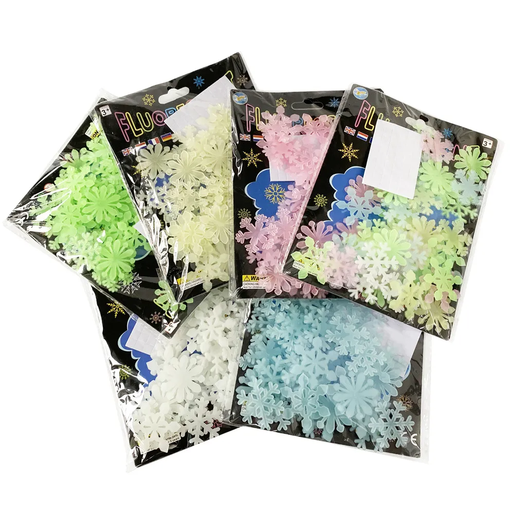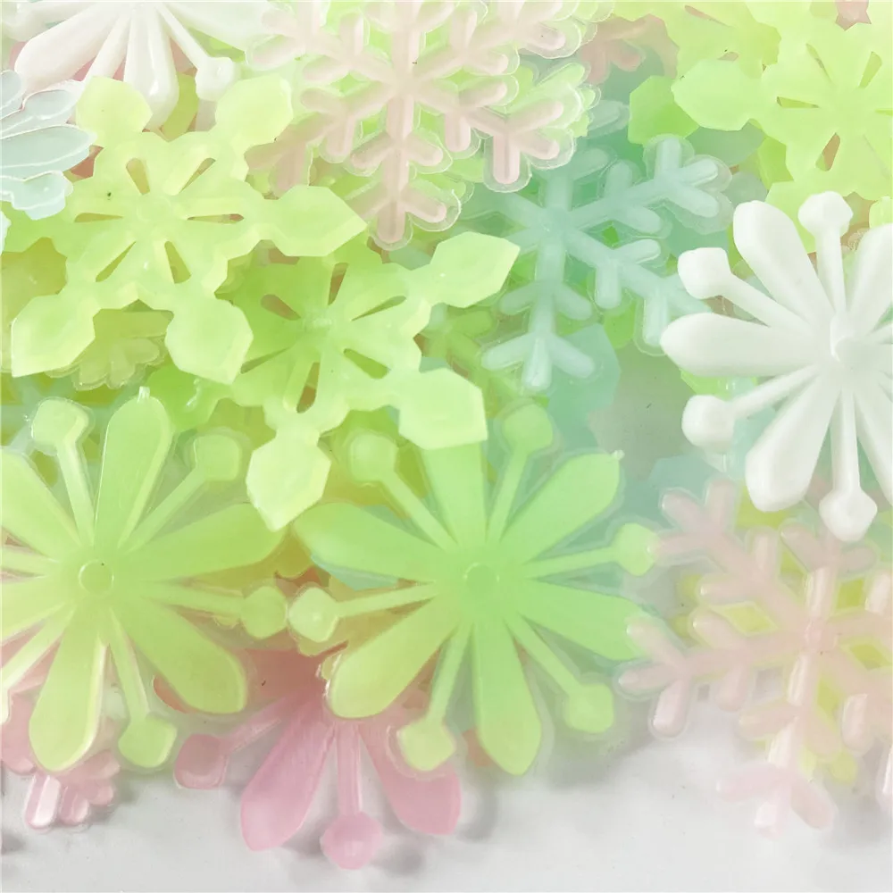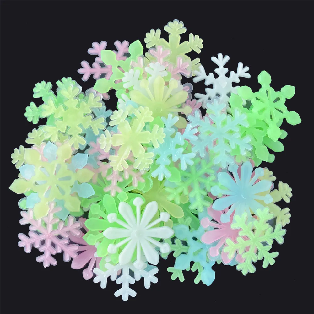 Наклейки для детских комнат, спальни, рождественские, 50 шт.компл., яркие, светящиеся, настенные стикеры снежинки, светится в темноте