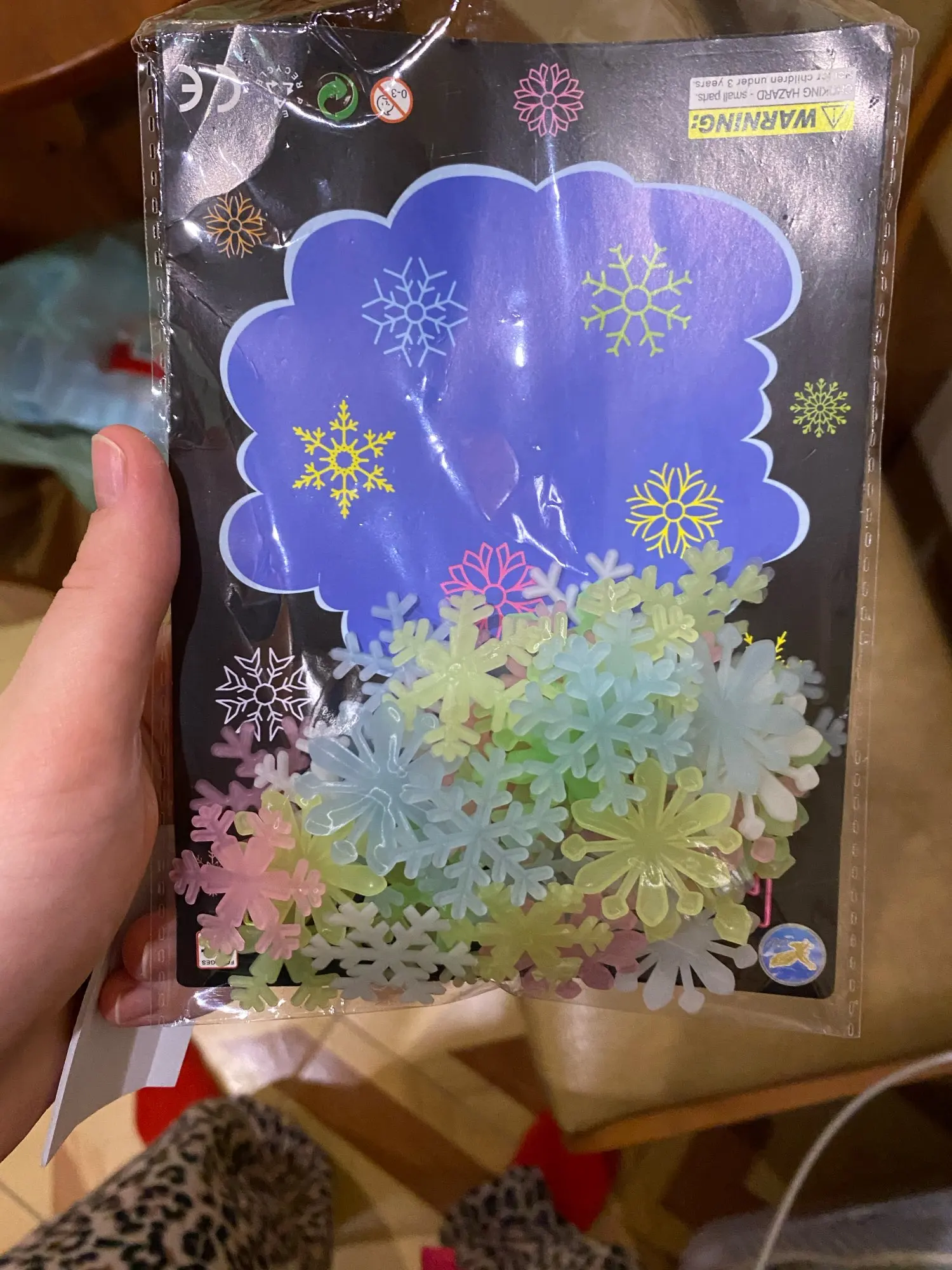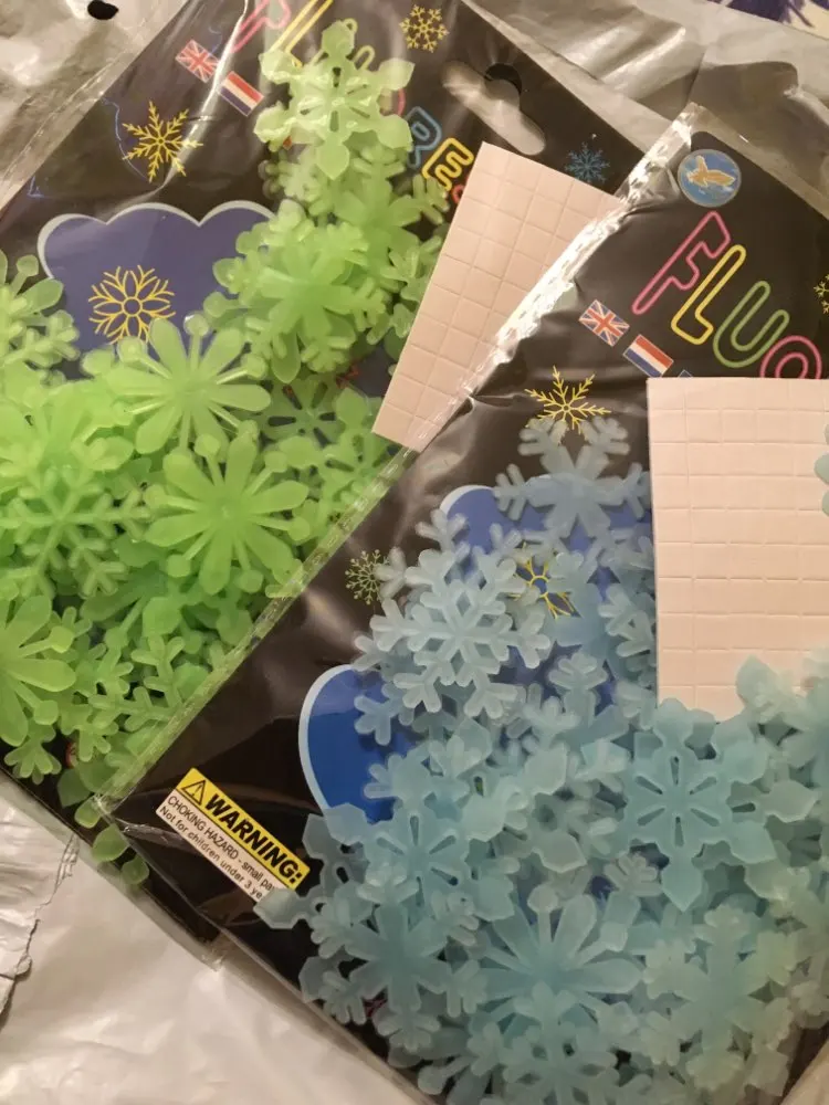снежинки понравились,светятся в темноте ,лучше всего голубые снежинки.