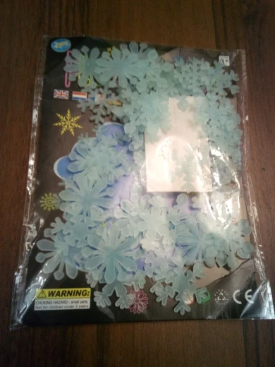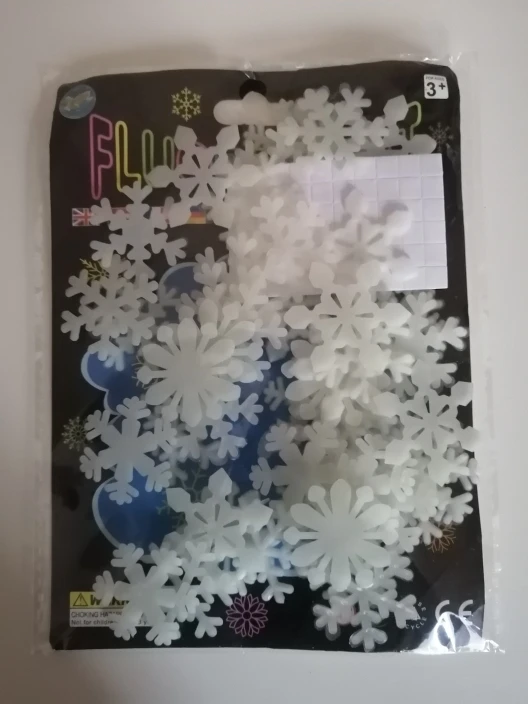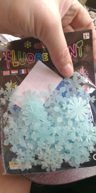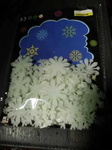 Снежинки неплохие, светятся в темноте, их много, но не ожидала, что они такие маленькие. В комплекте идёт двухсторонний скотч. Доставка мегабыстрая! Недели за 2 до Калининграда.