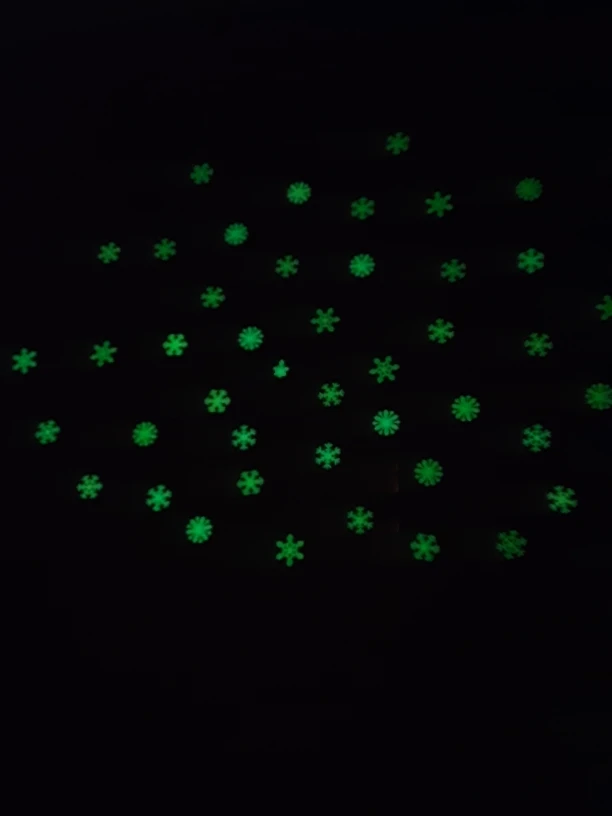 хорошие снежинки, небольшие, светятся в темноте. ребенок доволен. спасибо.