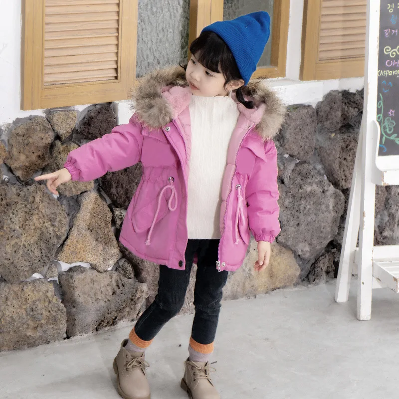Пуховик детский осенне-зимний, с меховым воротником, для девочек, 2020