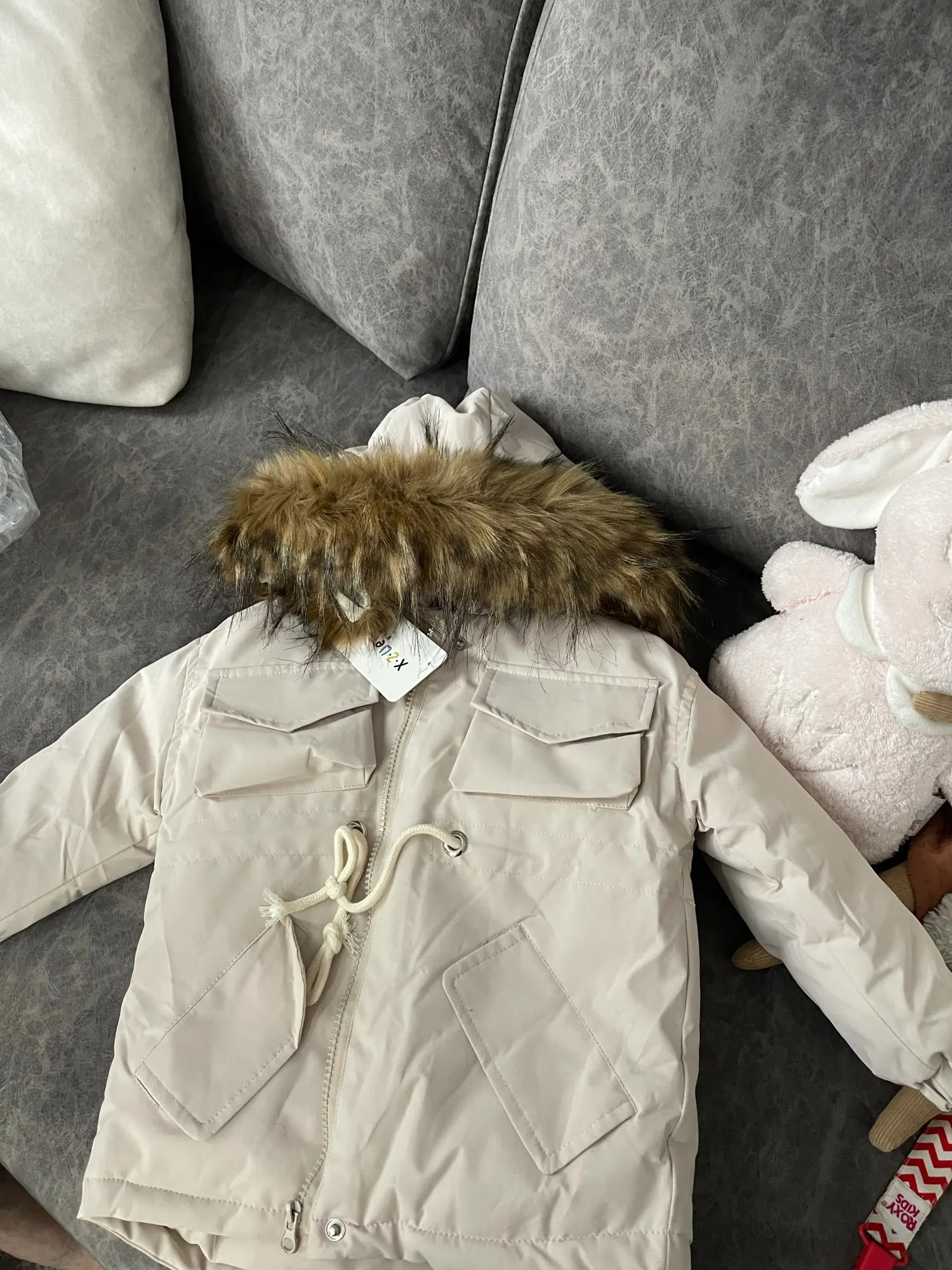 Спасибо огромное продавцу за курточку, брала в подарок . Все швы прострочены, чистая, мех искусственный, но неплохой. Благодарю за быстроту отправки. Покупайте, не пожалеете, курточка тёплая, внутри капюшона приятный мягкий подклад.