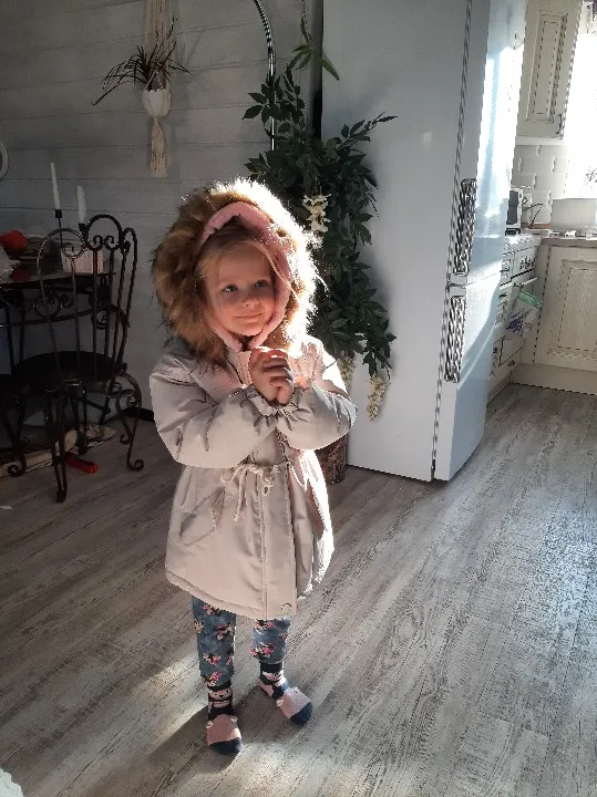 Курточка просто бомба, очень хорошая, качественная, тёплая, красивая, у нас такая стоит 5000₽ не меньше.Пришла очень быстро до Московской области.Долго думали с размером и не прогадали, нам 5 лет рост 110см, идеально подошёл размер , есть небольшой запас, хватит не на один сезон !мы в восторге от товара! Рекомендуем!!!!