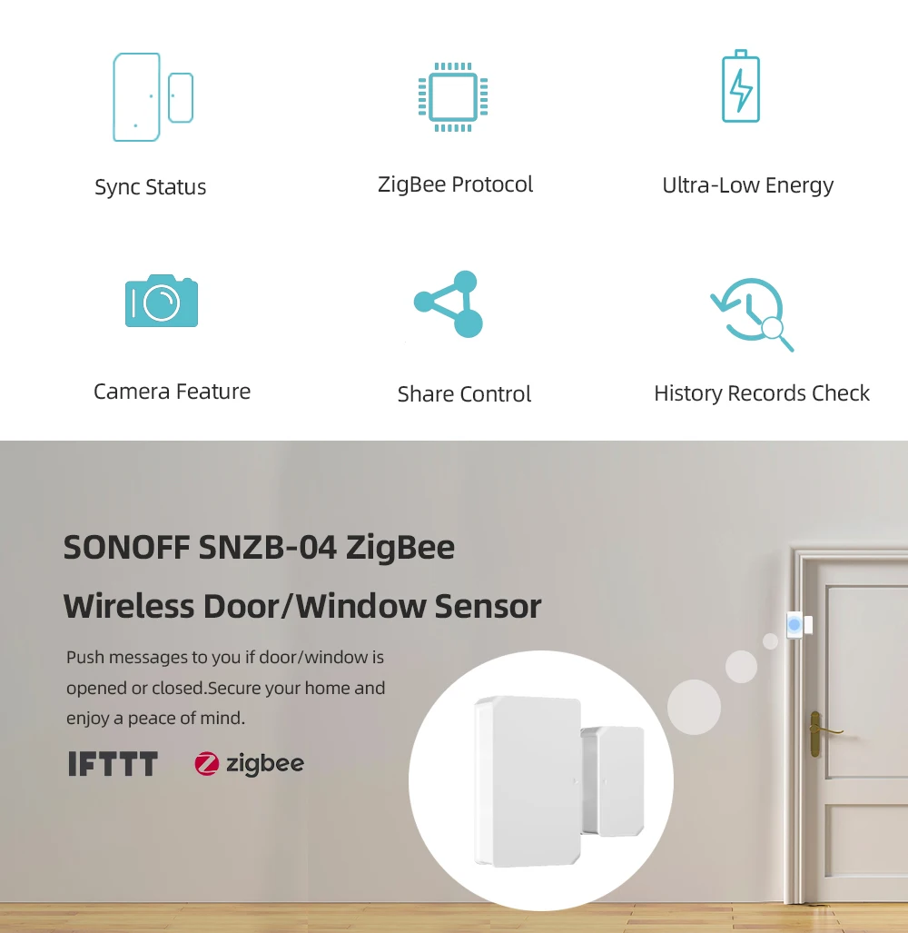 SONOFF Zigbee дверной оконный датчик, система охранной сигнализации, мини дверной магнитный датчик, умный дом, работа с мостом SONOFF Zigbee