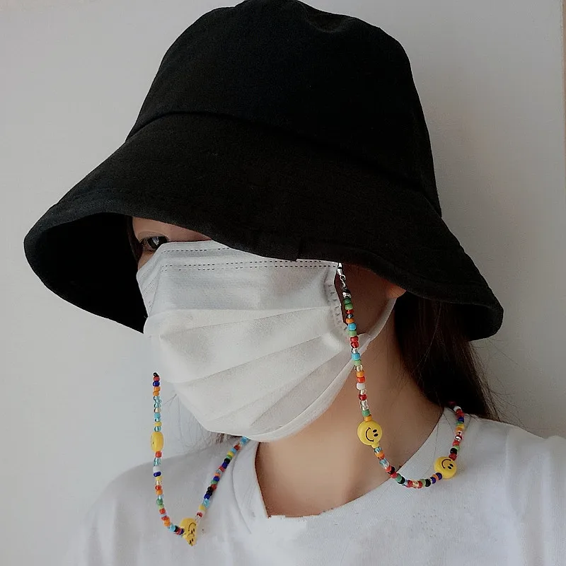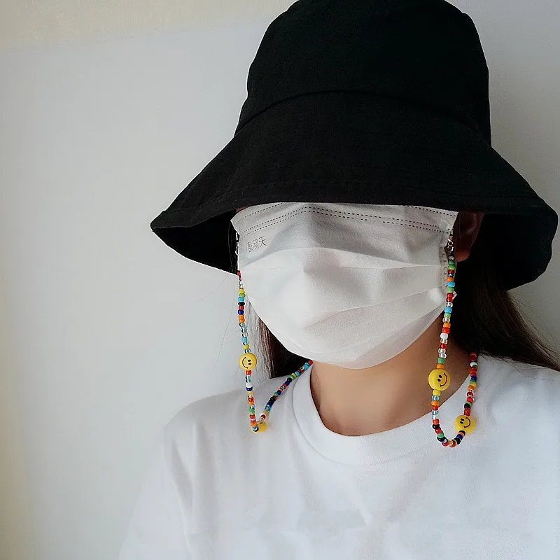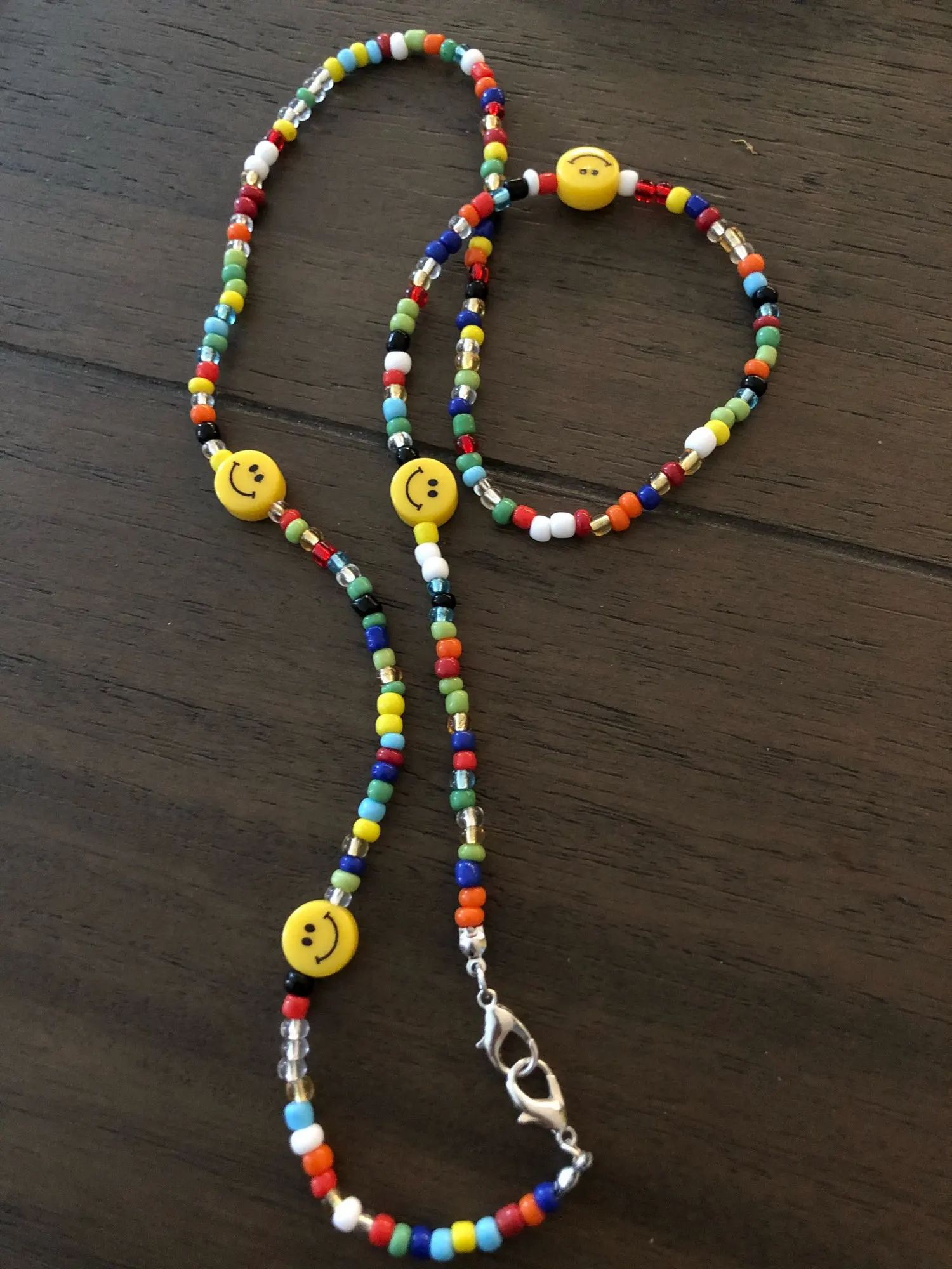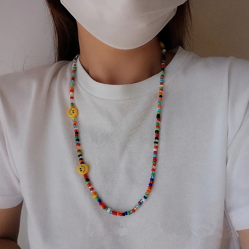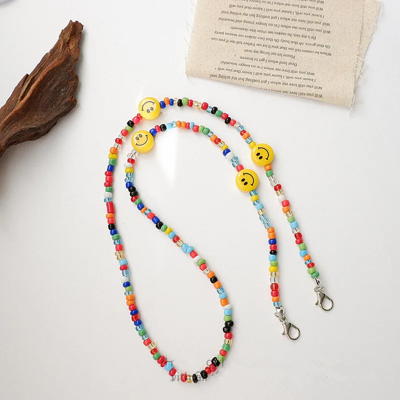 Цепочка-ожерелье для женщин, многофункциональная, с разноцветными бусинами, с изображением улыбающейся маски