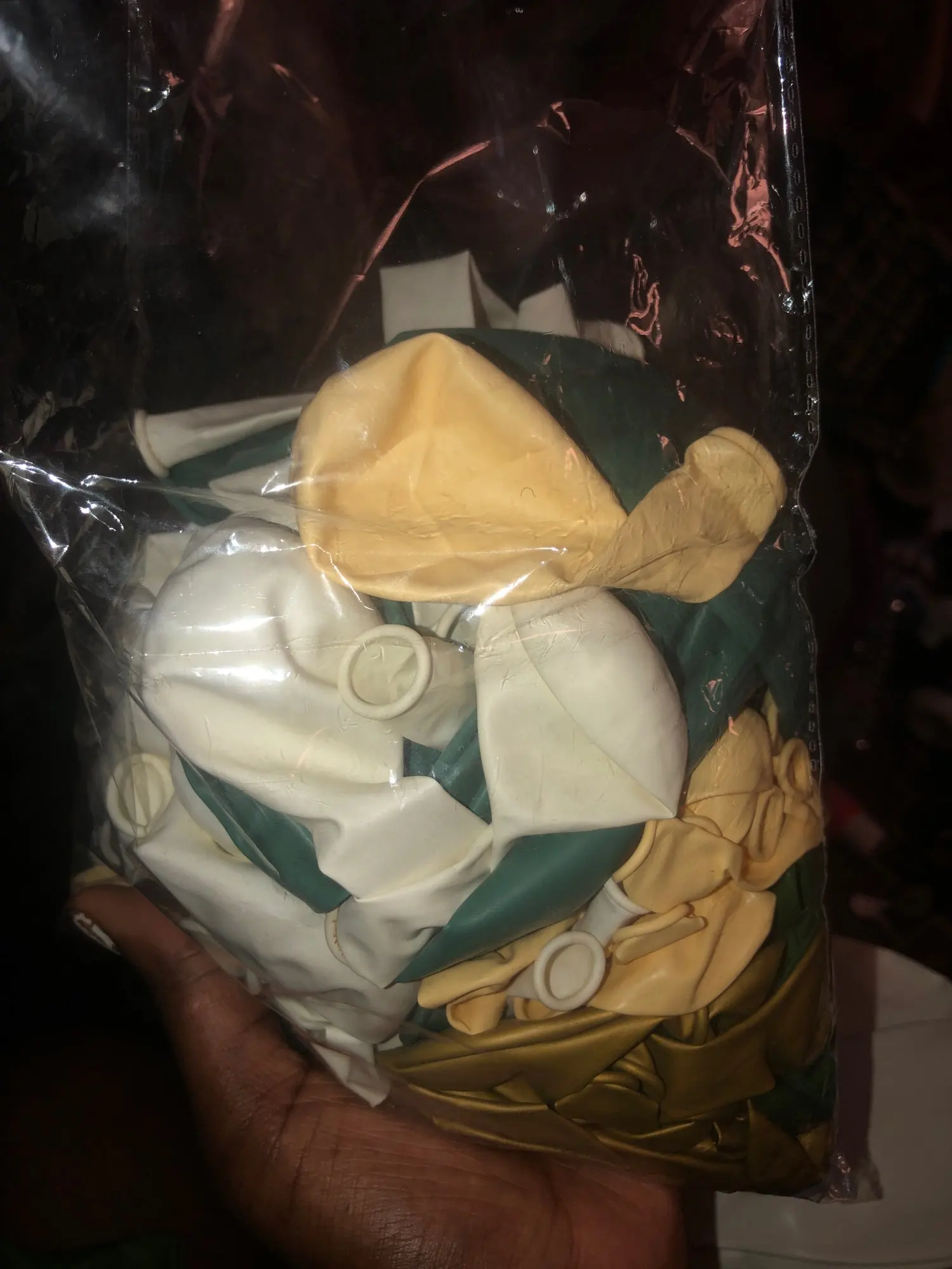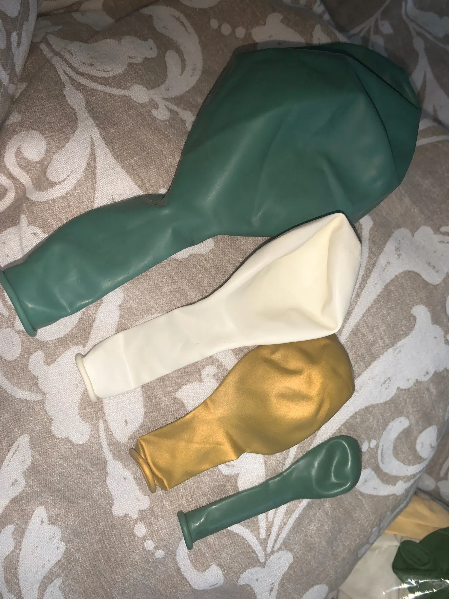 Чрезвычайно быстрая доставка! Прибыл через 2-3 дня, очень удивительно и все соответствует описанию. Very reliable seller. Упаковка не очень громоздкая, воздушные шары качественные, а цвета красивые. Есть два зеленых, как на фото и зеленый дерево. Золотые воздушные шары имеют металлический цвет. Я очень рекомендую! Большое спасибо! Я поставлю фотографии, как только смонтирую