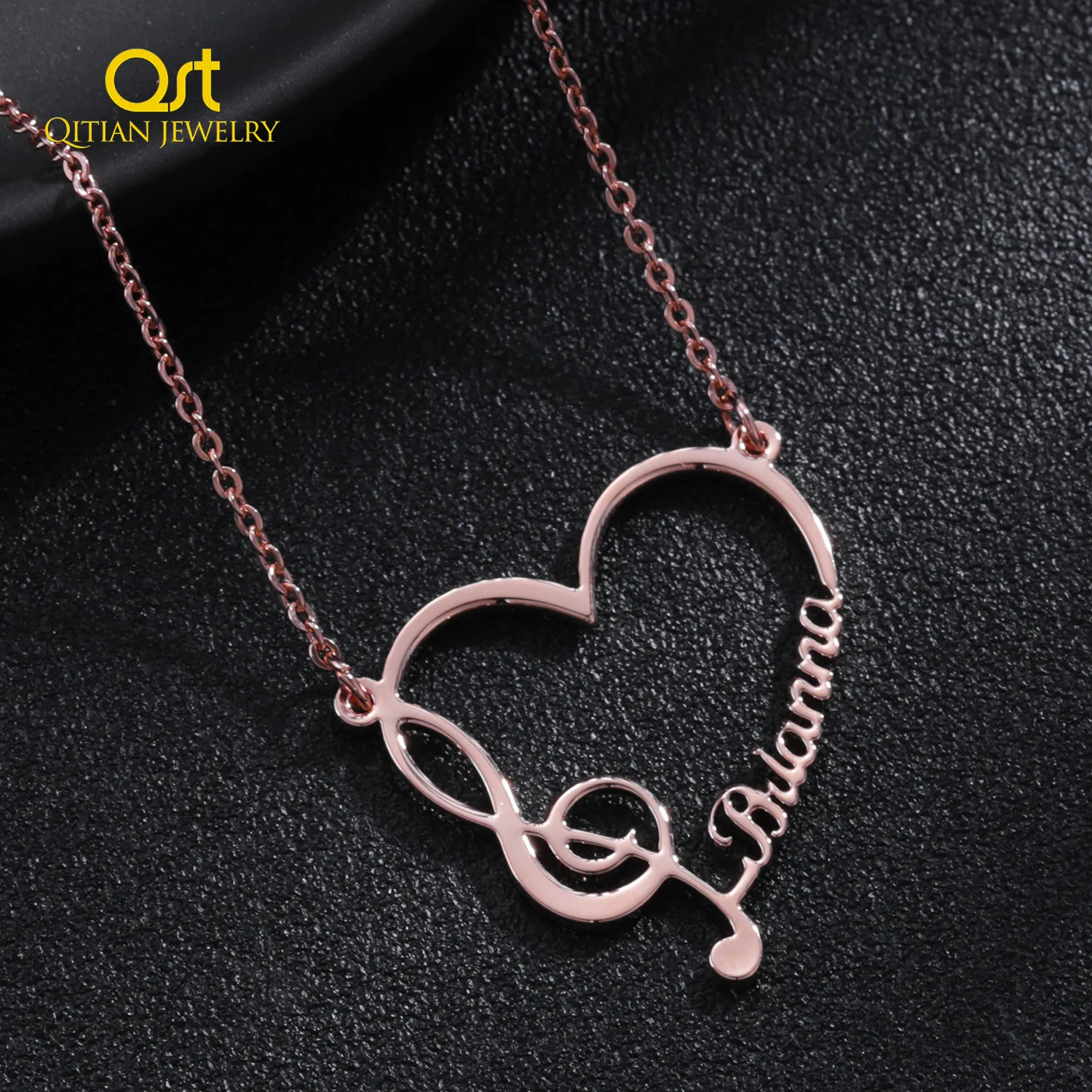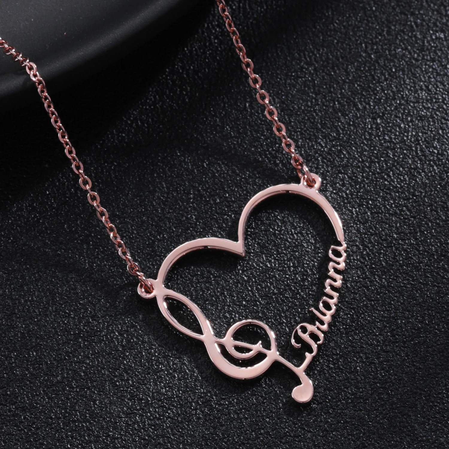Элегантный кулон в форме сердца с именем, персонализированное женское ожерелье, музыкальный подарок на день рождения, музыкальная академия, технические подарки