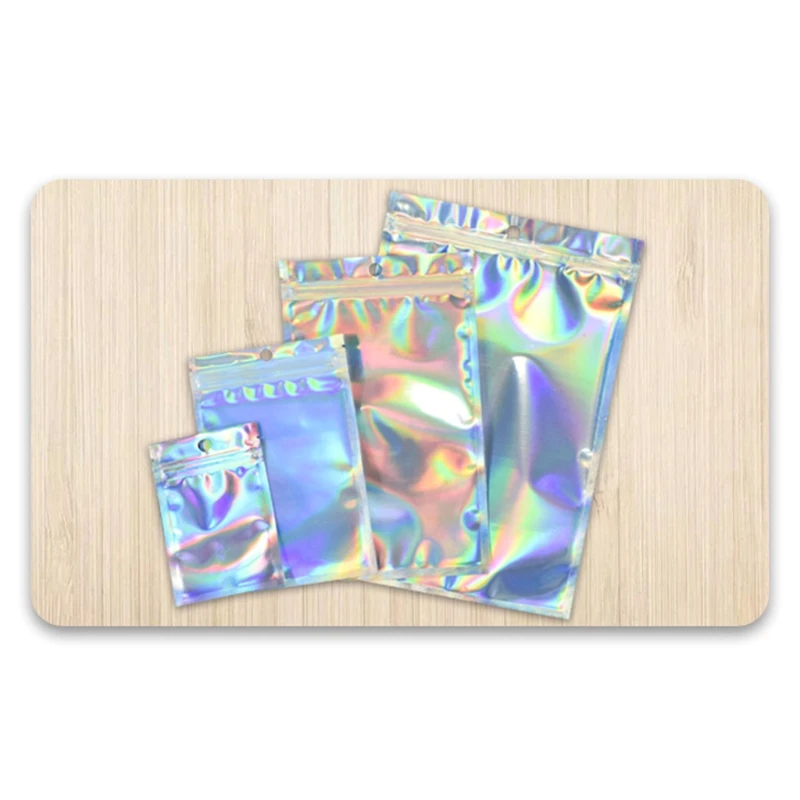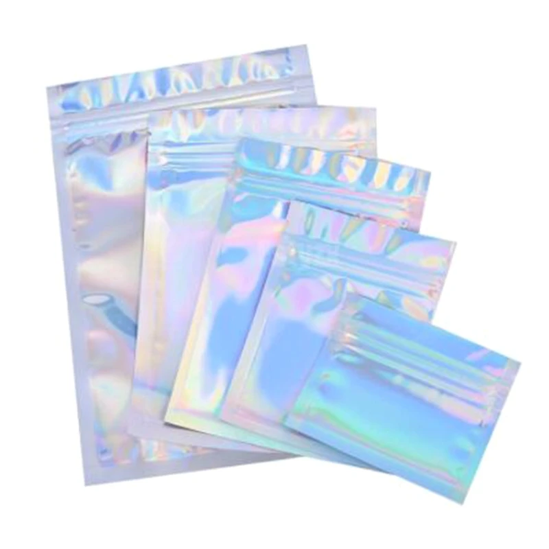 100 шт., прозрачные пакеты на молнии, голографическая сумка для хра...