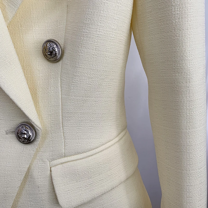 Женский классический блейзер на пуговицах в стиле HIGH STREET, новинка 2022, двубортный приталенный Блейзер с текстурой в виде льва, пастельно-желтого цвета