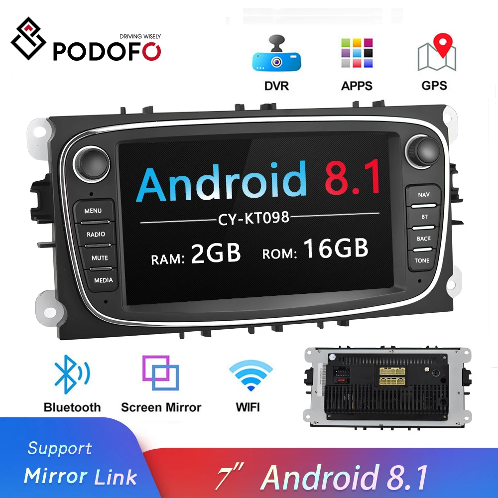 Podofo Android 2 Din мультимедийный видео плеер GPS Авторадио Wifi стерео приемник для Focus Mondeo C-MAX S-MAX Galaxy II Kuga