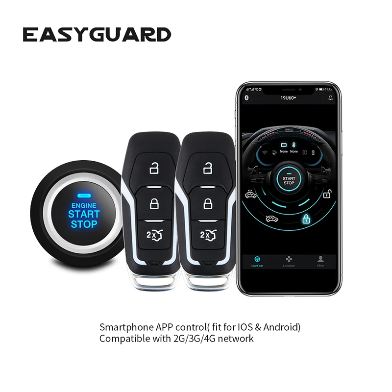 Система безопасности EASYGUARD, app-контроль, IOS Android, 4G, 3G, 2G, бесключевой доступ к системе запуска двигателя, удаленный запуск двигателя, GPS, GSM