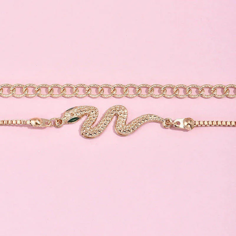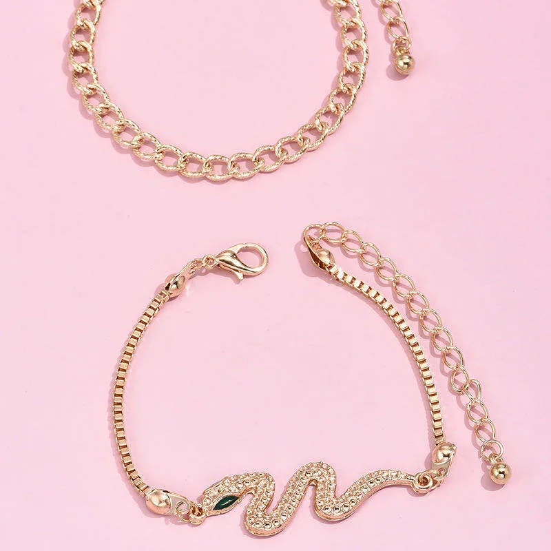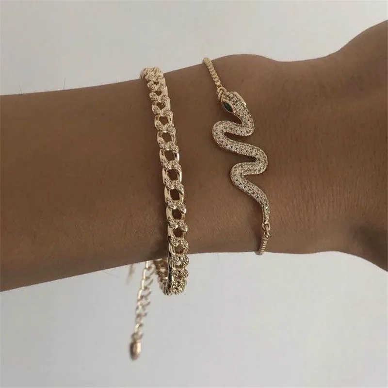 2020 2 шт.компл. винтажные браслеты для женщин, Очаровательная Золотая цепочка, Змеиный геометрический браслет, Женский богемный пляжный ювелирный подарок