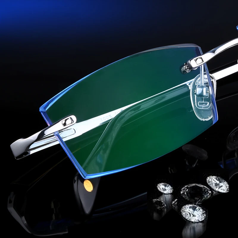 Очки мужские титановые без оправы с фильтром сисветильник и диоптриями