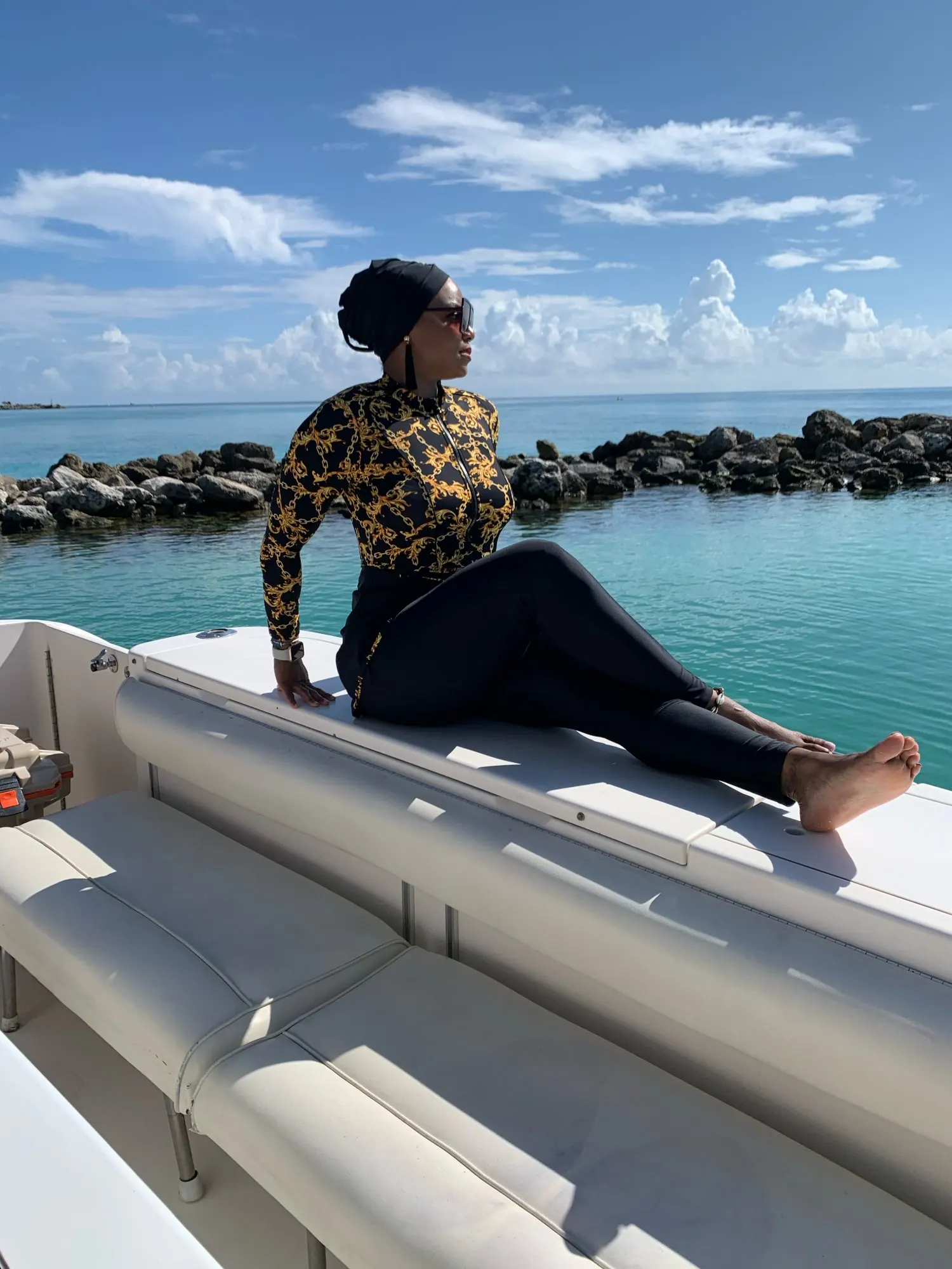 Скромный купальник, Мусульманский купальник с длинным рукавом и золотым принтом, женский купальник, купальник в исламе, бикини, пляжная одежда