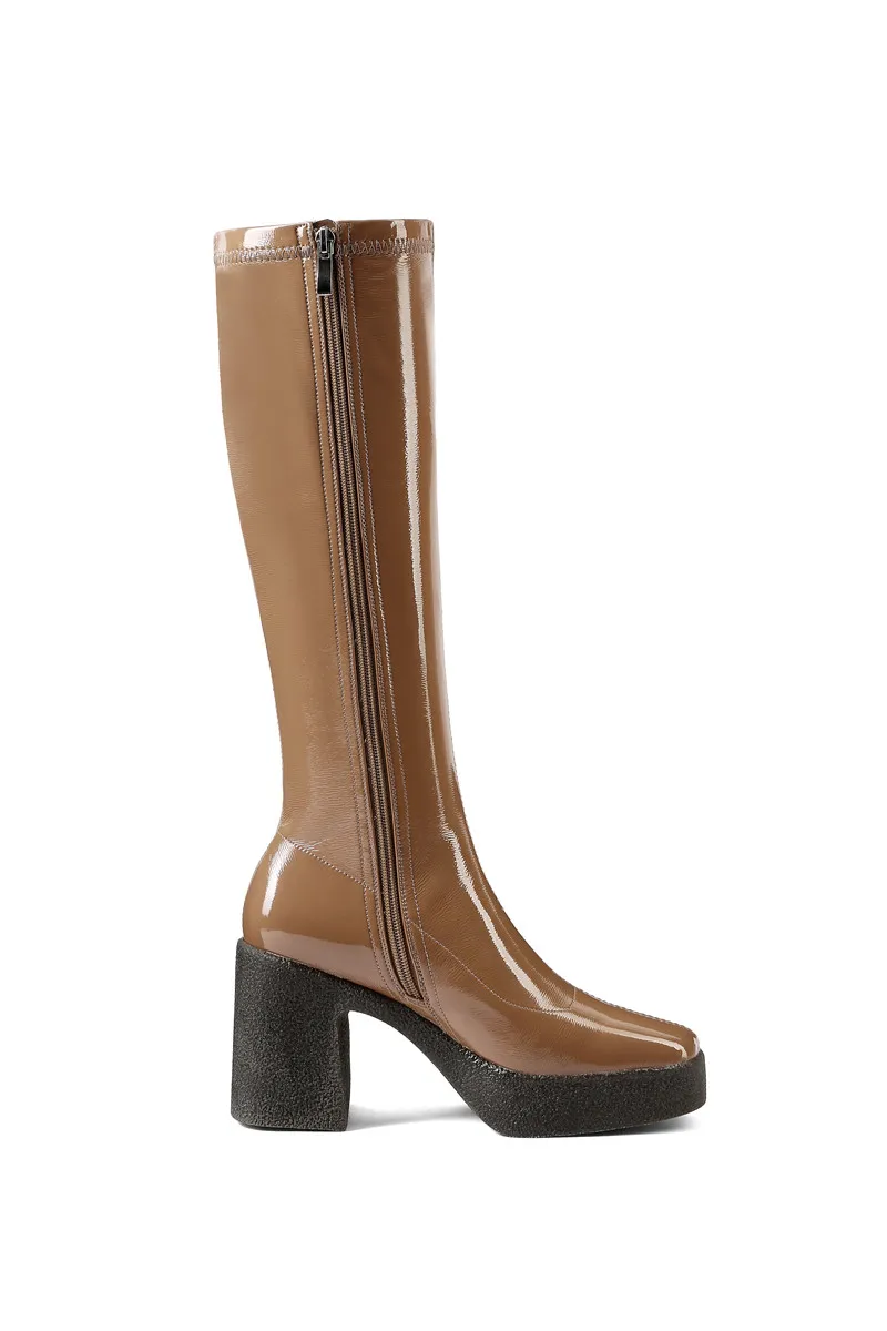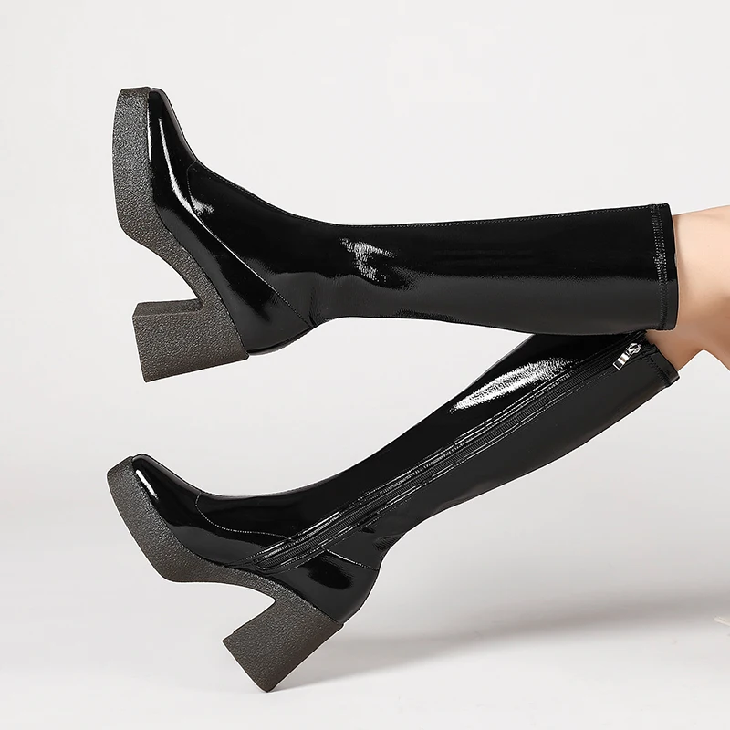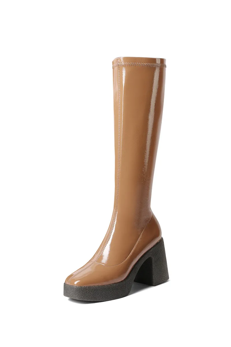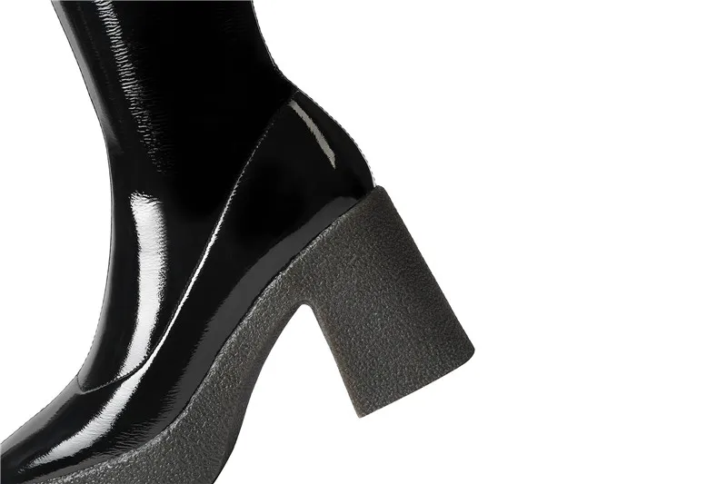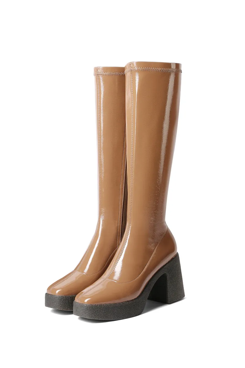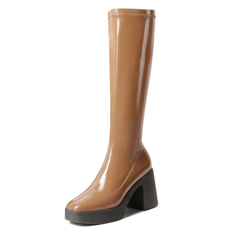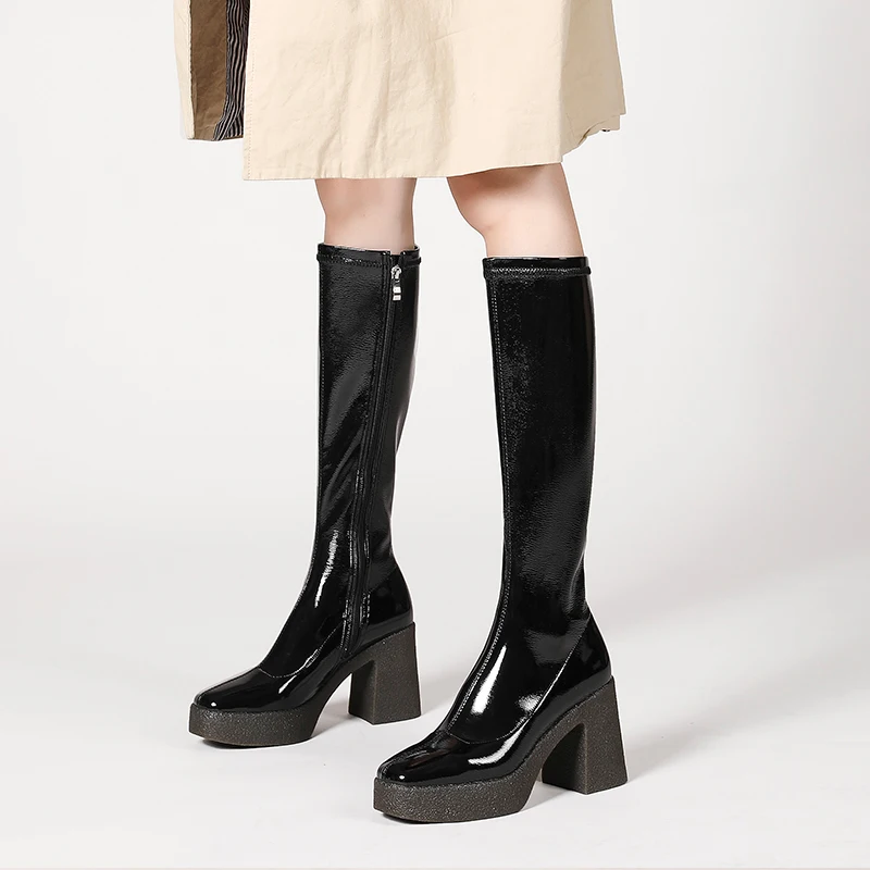 Женские сапоги до колена MORAZORA, черныеабрикосовые однотонные сапоги на платформе и высоком квадратном каблуке, зима 2021