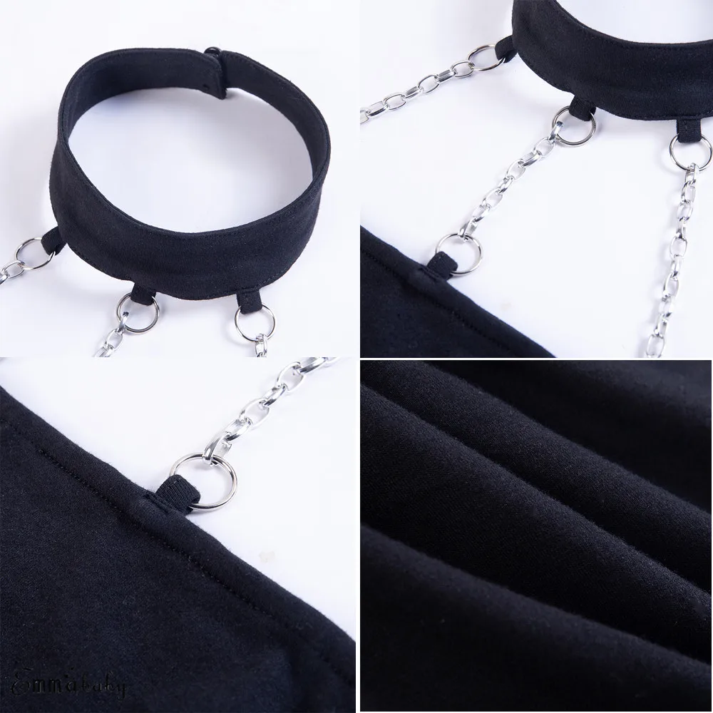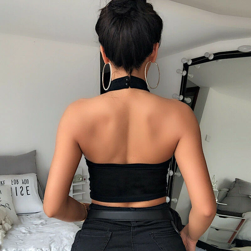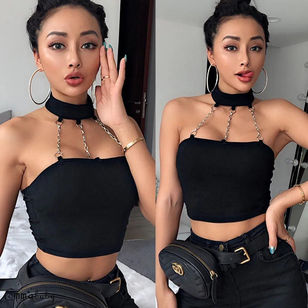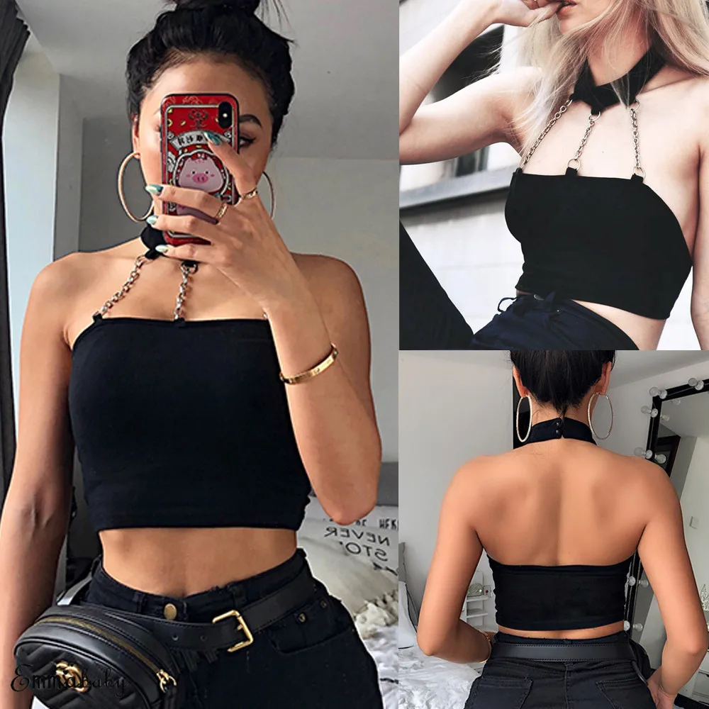 Женский укороченный топ без рукавов с металлической цепочкой, укороченный топ без рукавов с цепочкой в стиле панк, Клубная одежда, пикантная майка, на лето