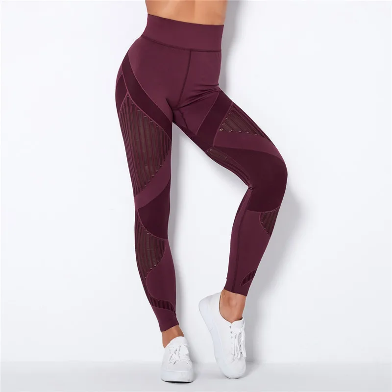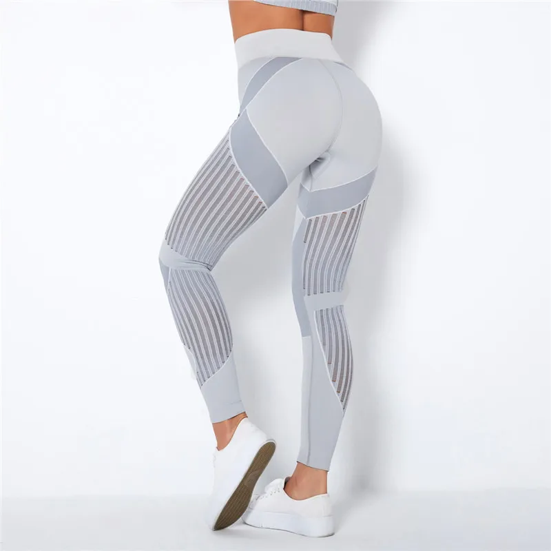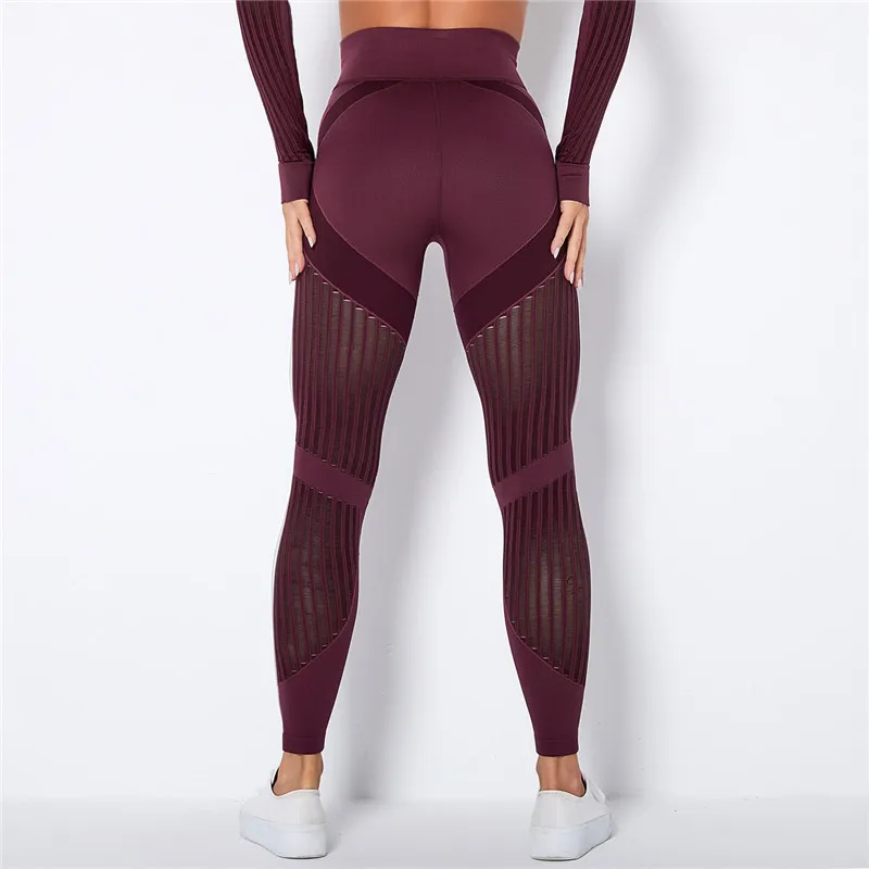 Леггинсы женские бесшовные с высокой талией, ажурные брюки для йоги...