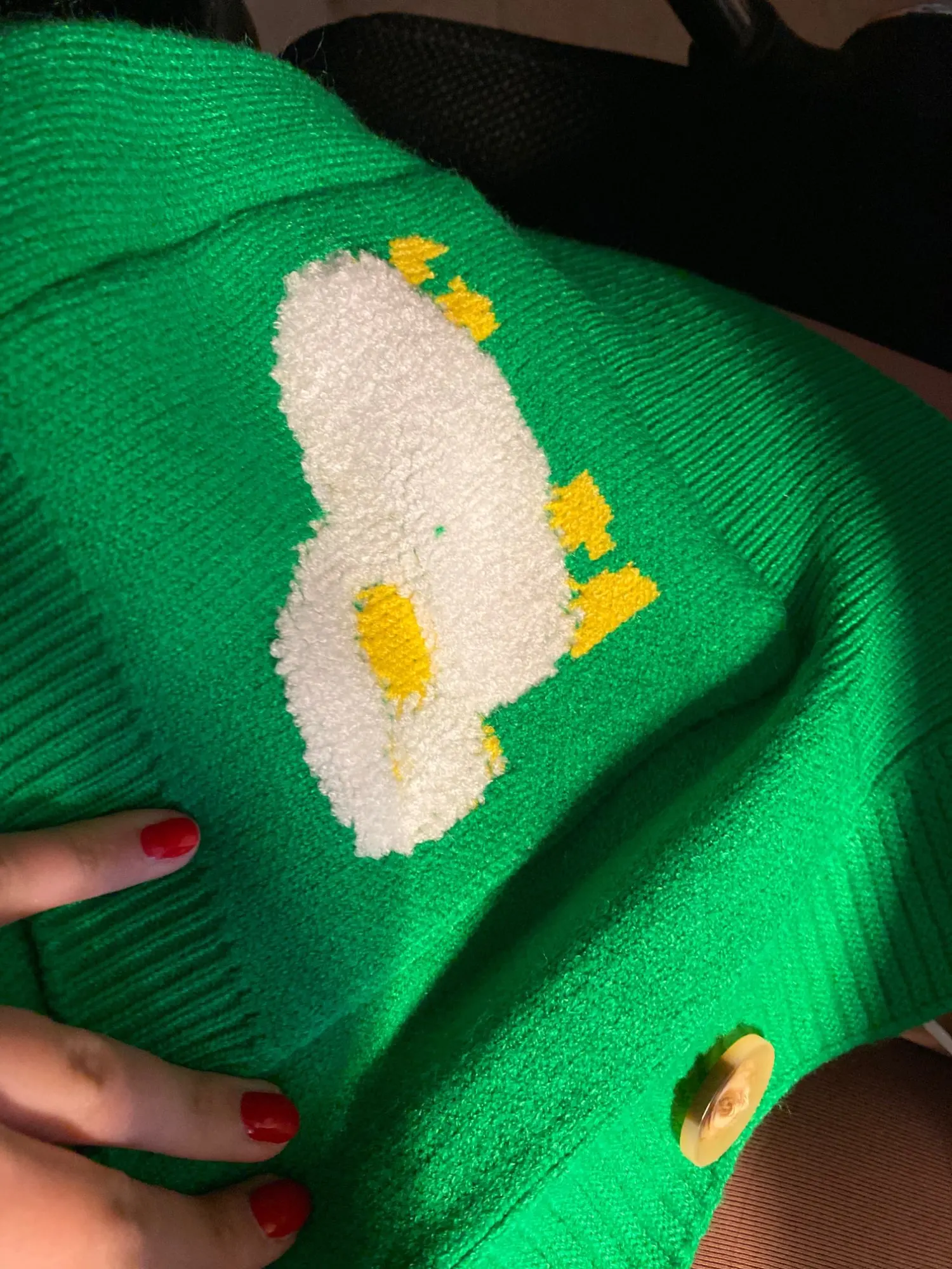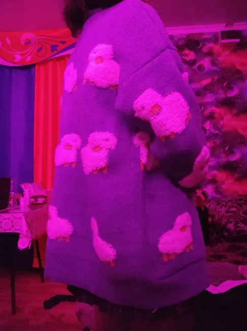 Кардиган хороший уютный. Много торчащих ниток, надеюсь ничего не распуститься.