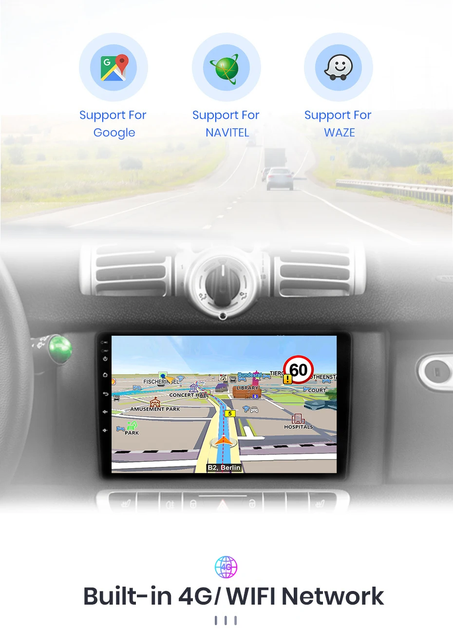 GPS Navigation mapBuilt-in offline map, free update (support Igo/Waze/Google map/Navite)