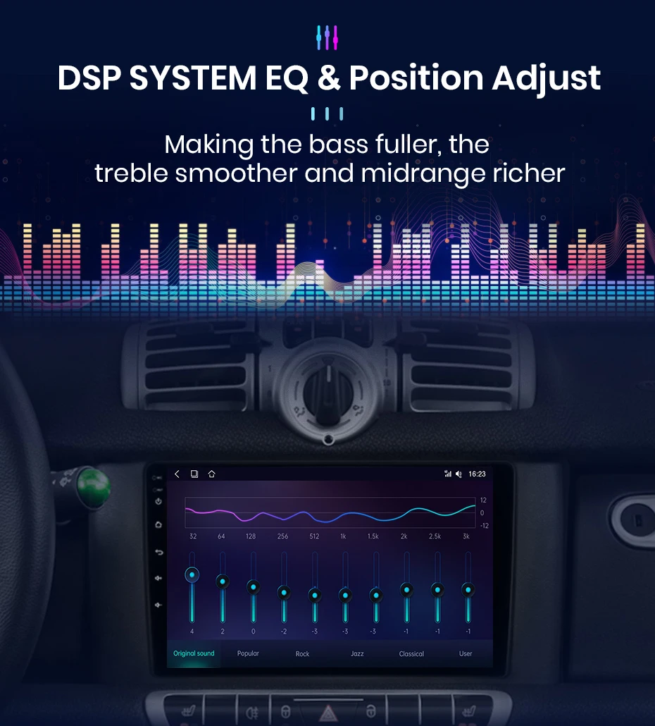 Screen display9.0 inch 2.5D screen, 1024*600 resolution