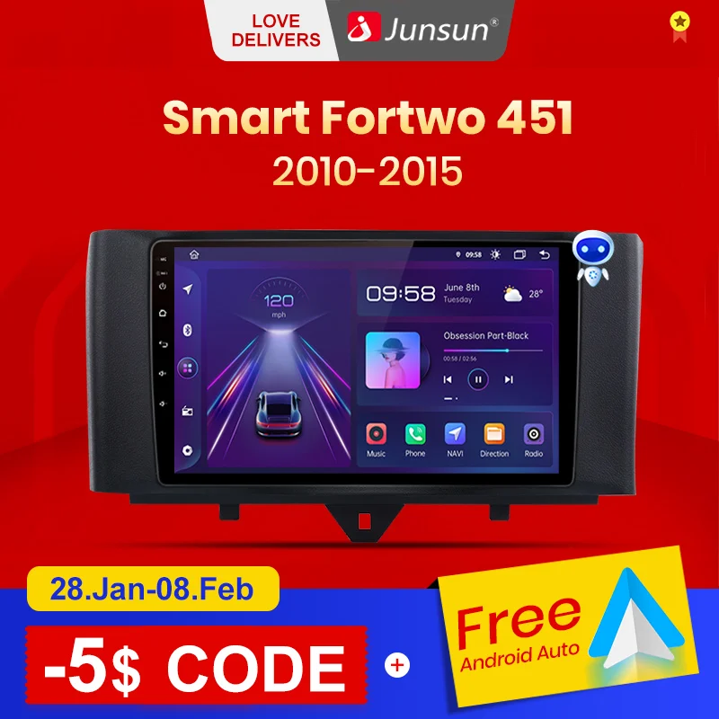 Junsun V1 pro AI Voice 2din магнитола андроид for Mercedes Benz Smart Fortwo 2010-2015 автомагнитола Аудио для авто GPS Track Carplay 2din dvd
