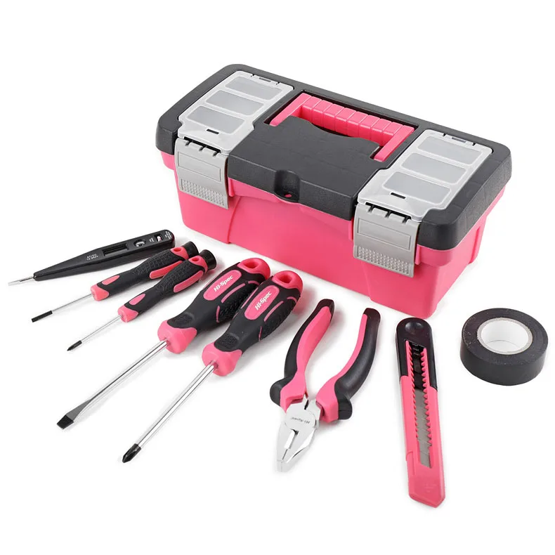 Набор инструментов для домашнего ремонта, комплект из 8 предметов, ручные инструменты розового цвета сделай сам