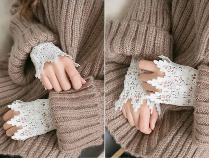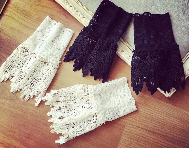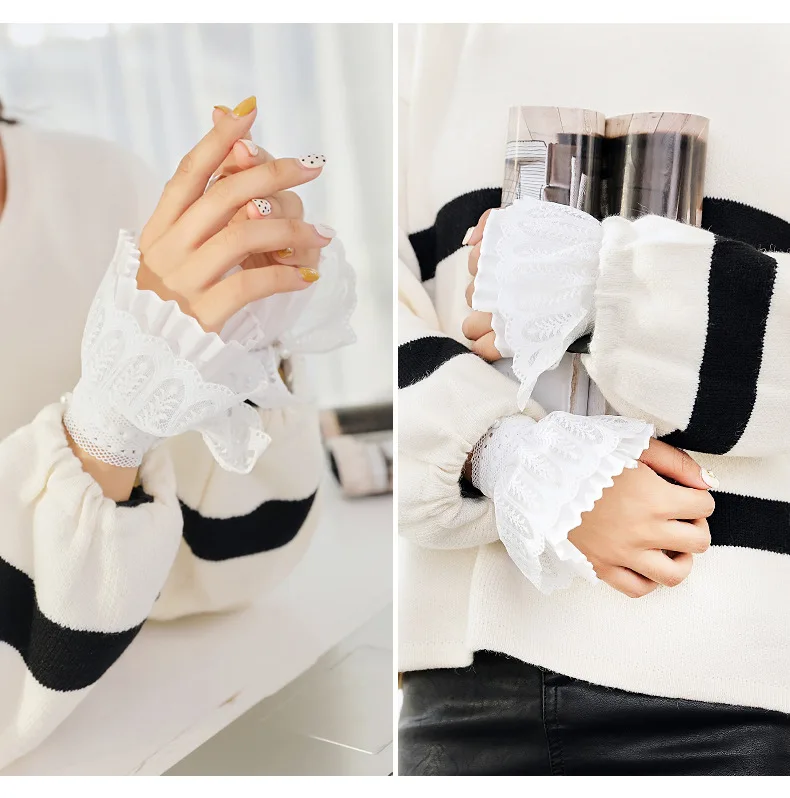 Женские Искусственные расклешенные рукава, цветочное кружево, искусственные манжеты, накладные рукава, блузка, одежда, платье, свитер, запястье, короткий рукав