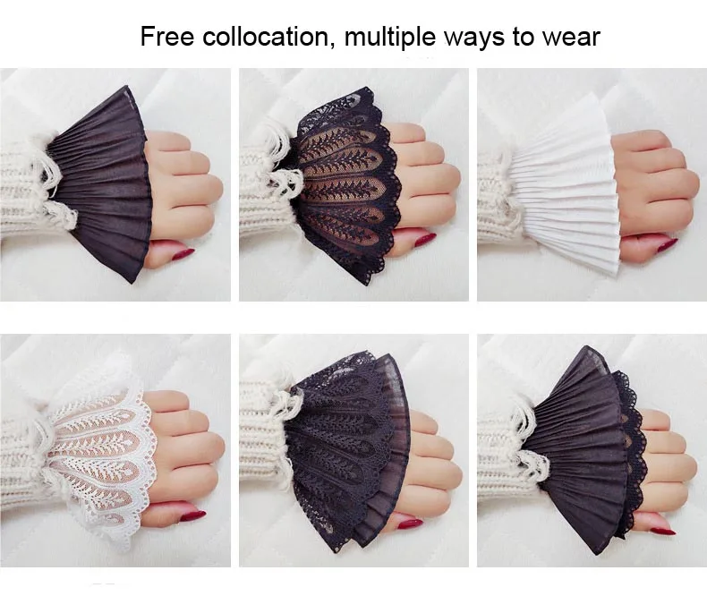 Женские кружевные плиссированные с рюшами Ложные манжеты Ложные рукава блузка одежда платье свитер с коротким рукавом