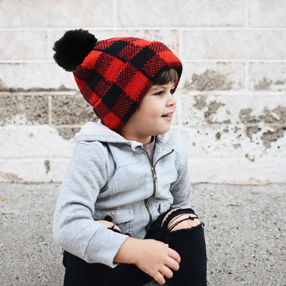 FOCUSNORMРождественская вязаная шапка для маленьких девочек и мальчиковвзрослых, шерстяная шапка в клетку с принтом, От 0 до 3 лет для малышей