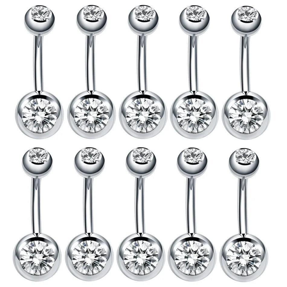 10 шт.лот, кольцо для пирсинга пупка из хирургической стали с одним кристаллом и стразами, для пирсинга пупка, Ombligo 58 мм