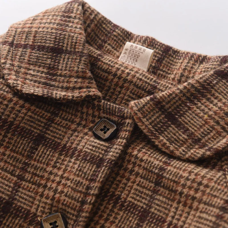 Куртка Шерстяная детская, осенняя, теплая, в клетку, со шляпой